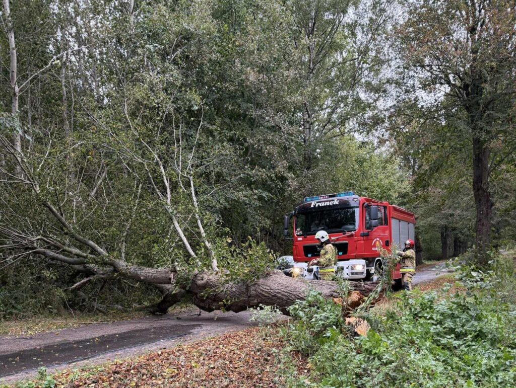 Silny wiatr – powalone drzewa i uszkodzony dach
