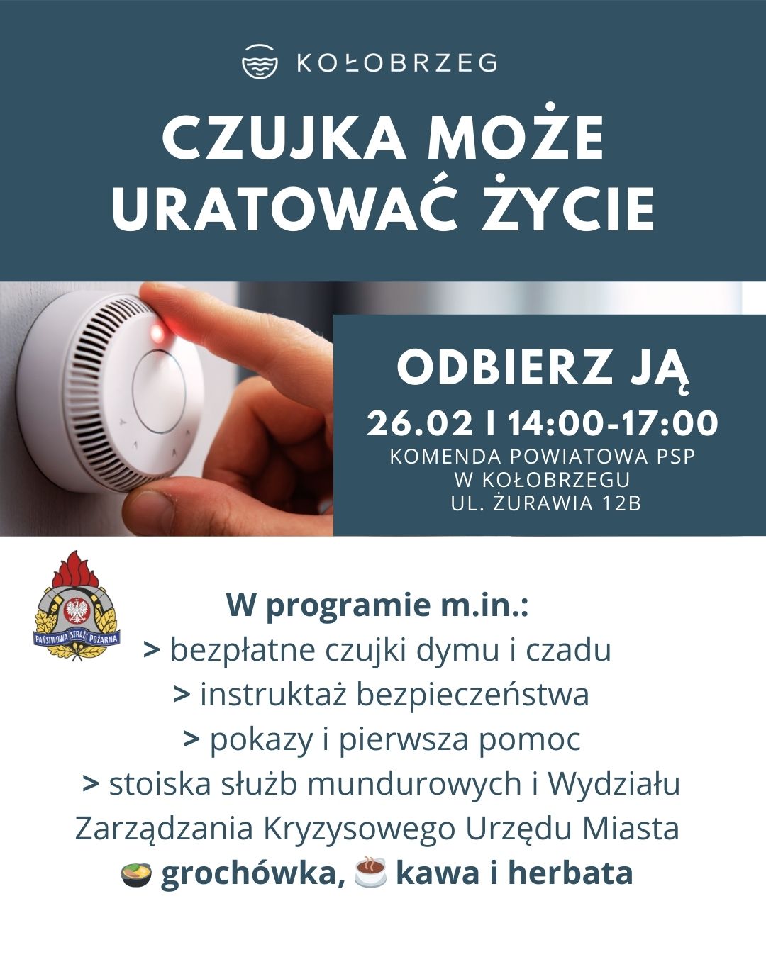 W Komendzie Powiatowej PSP, która znajduje się przy ul. Żurawia 12B, odbędzie się akcja „Czujka może uratować życie”. Kiedy? W najbliższy czwartek, 26 lutego w godz. 14.00 – 17.00. W programie m.in. bezpłatne czujniki dymu i czadu, instruktaż bezpieczeństwa, pokazy pierwszej pomocy.