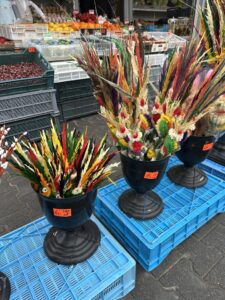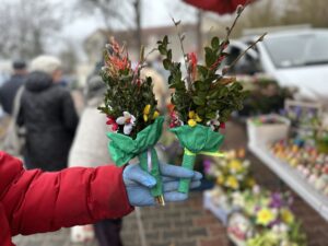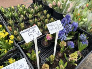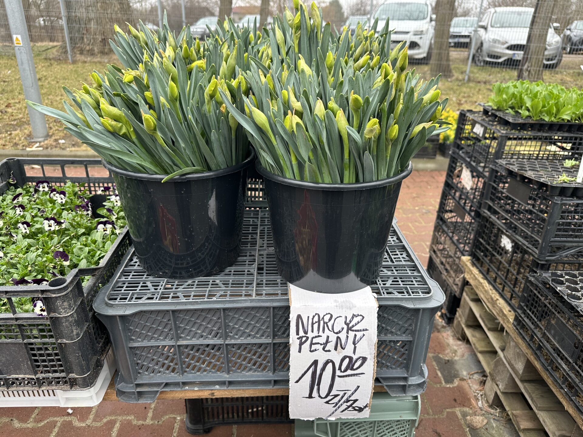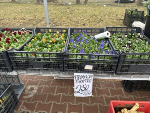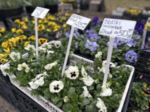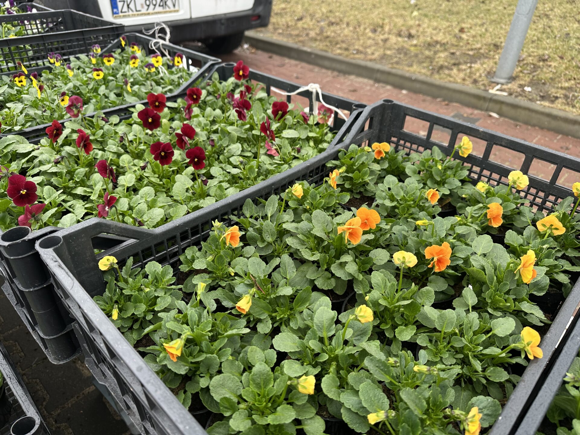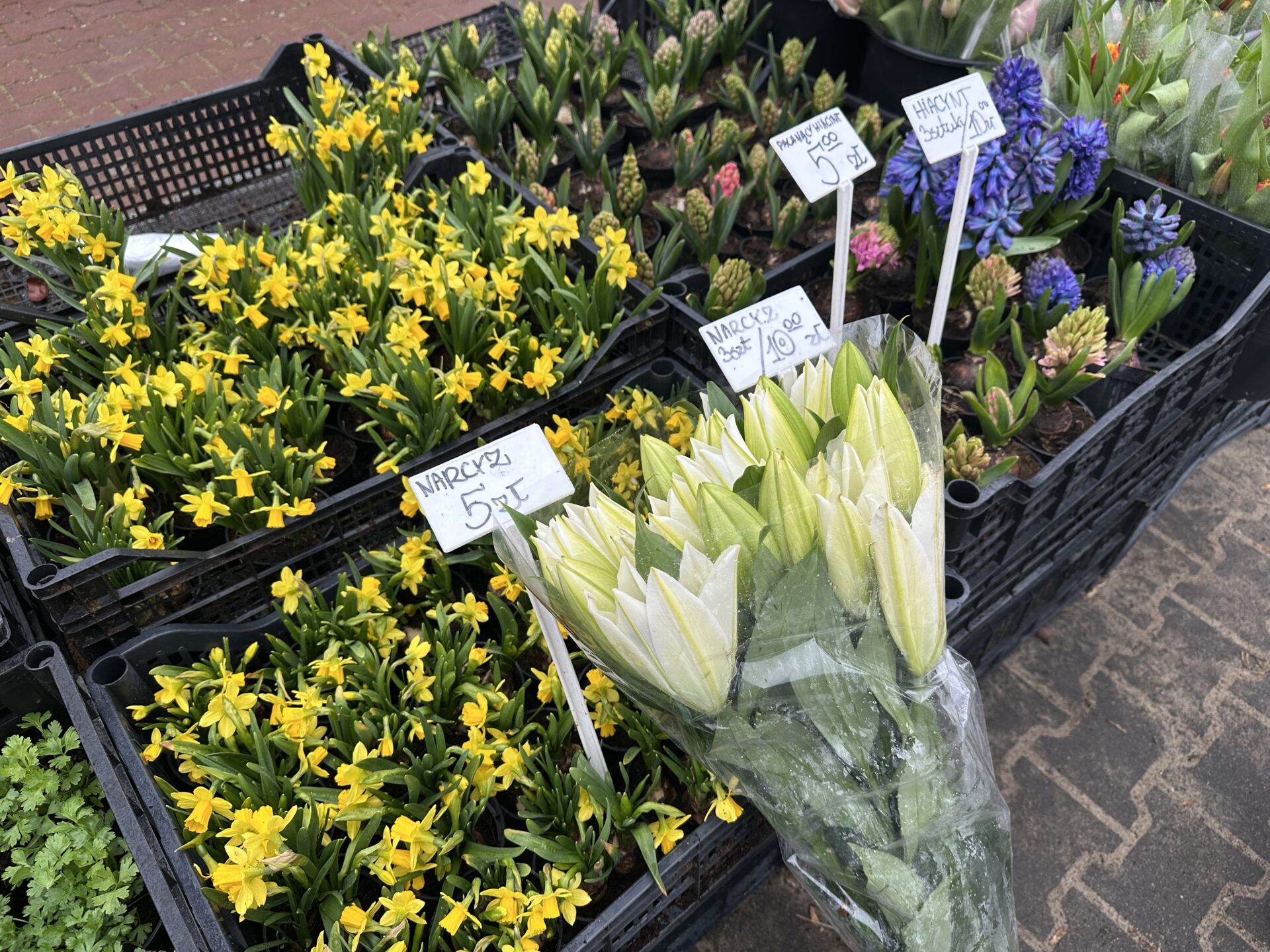 Wiosenny charakter targowiska podkreślają także kwiaty. Wśród nich królują przede wszystkim bratki i tulipany, które pojawiają się niemal na każdym stoisku ogrodniczym. Intensywne kolory kwiatów dodają miejscu energii i sprawiają, że spacer między straganami staje się jeszcze przyjemniejszy.
