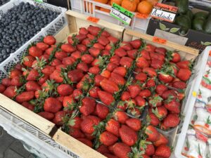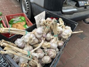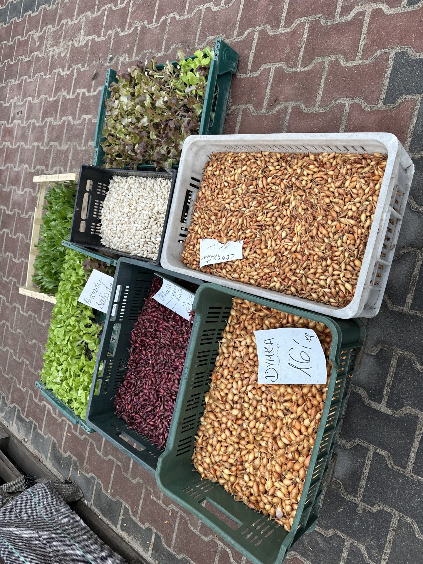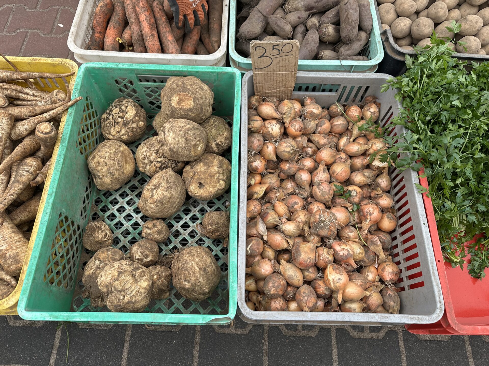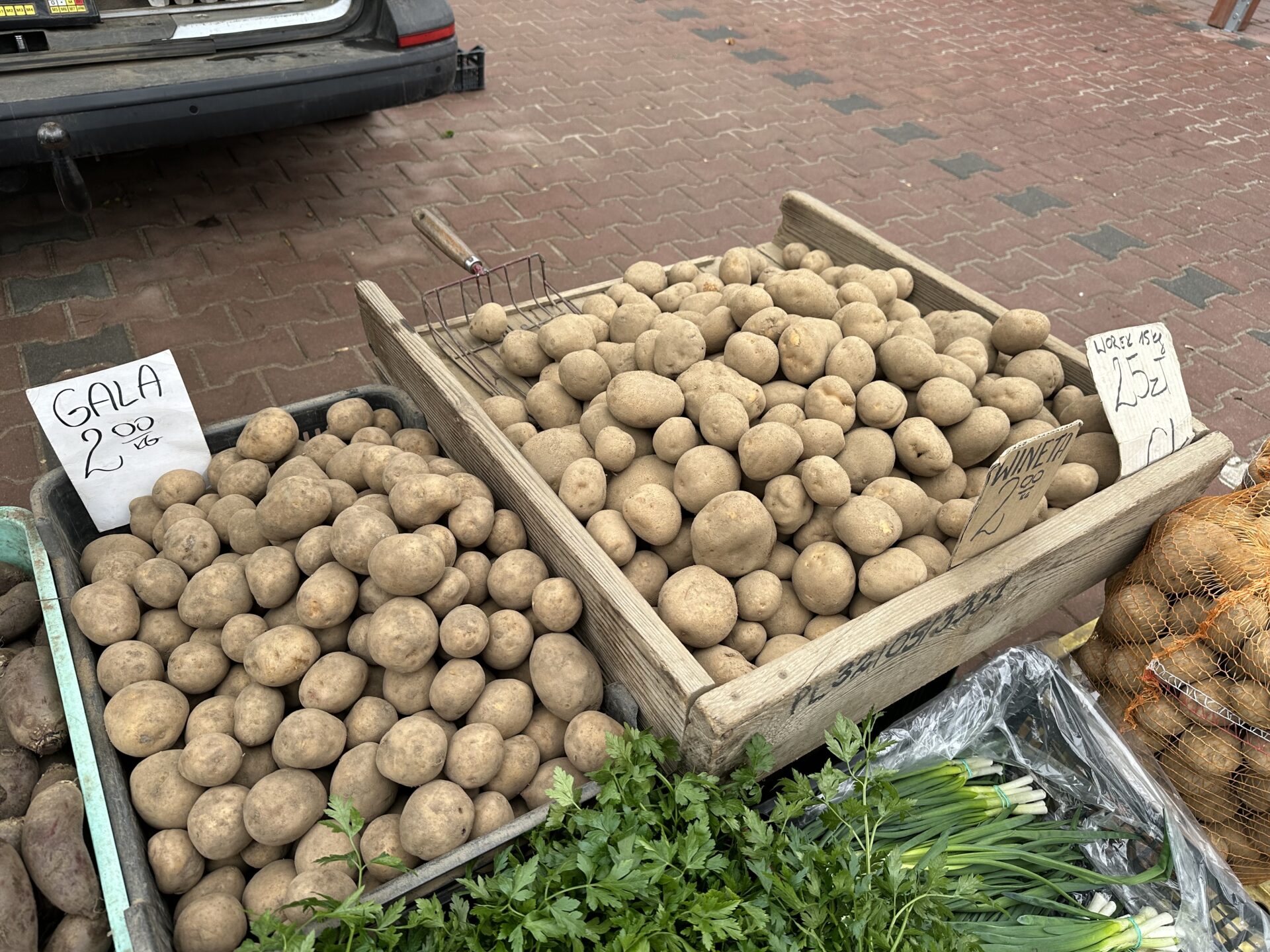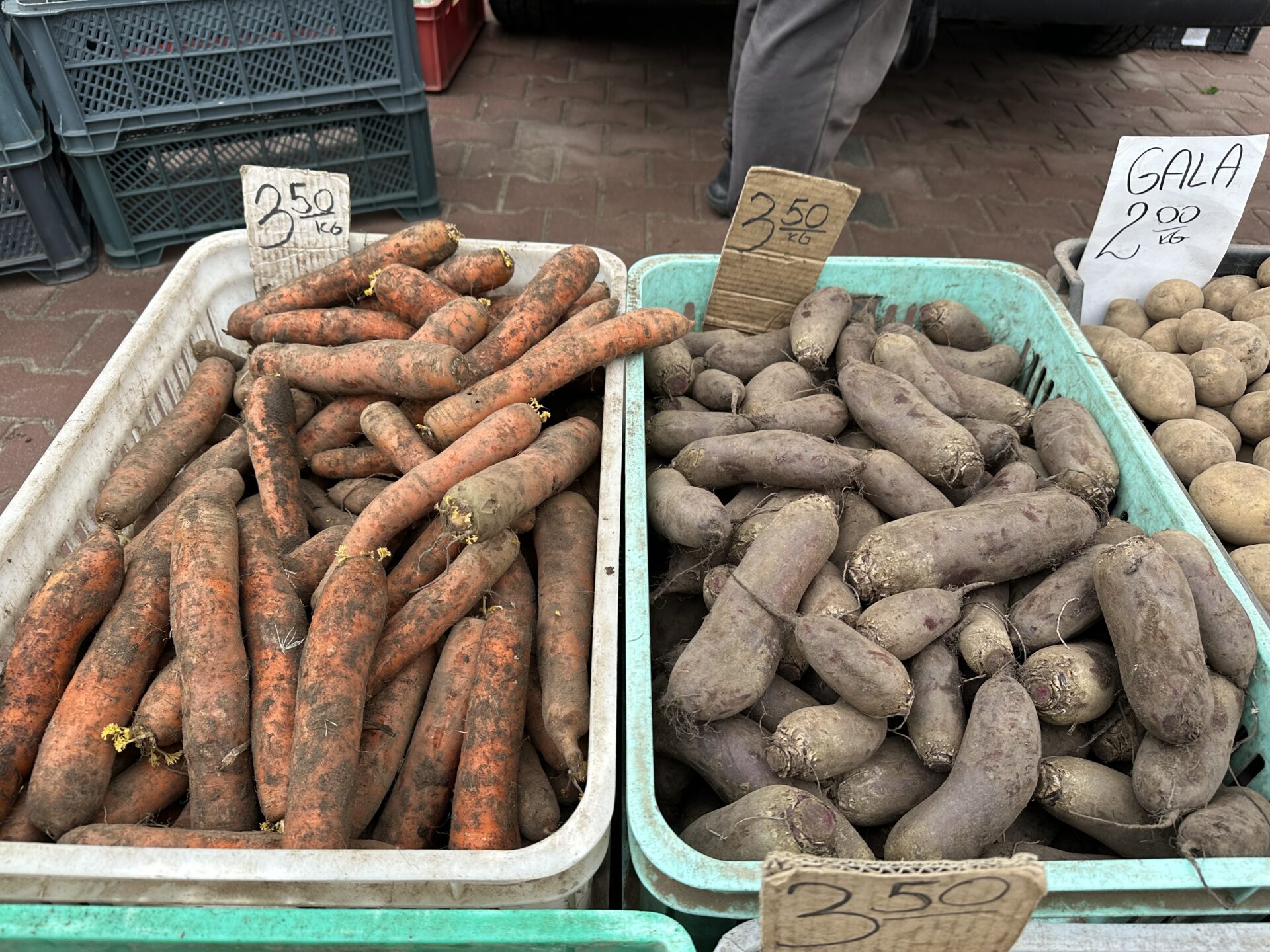 Oczywiście targowisko to wciąż przede wszystkim świeże produkty spożywcze. Na stoiskach nie brakuje warzyw i owoców – zarówno tych codziennych, jak i pierwszych wiosennych nowalijek. Lokalni sprzedawcy oferują szeroki wybór produktów, dzięki czemu każdy może znaleźć coś dla siebie.