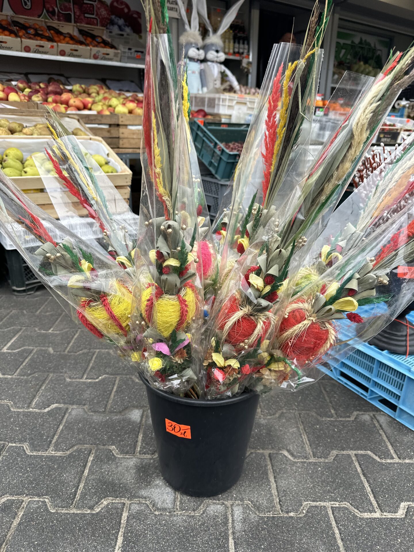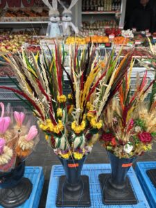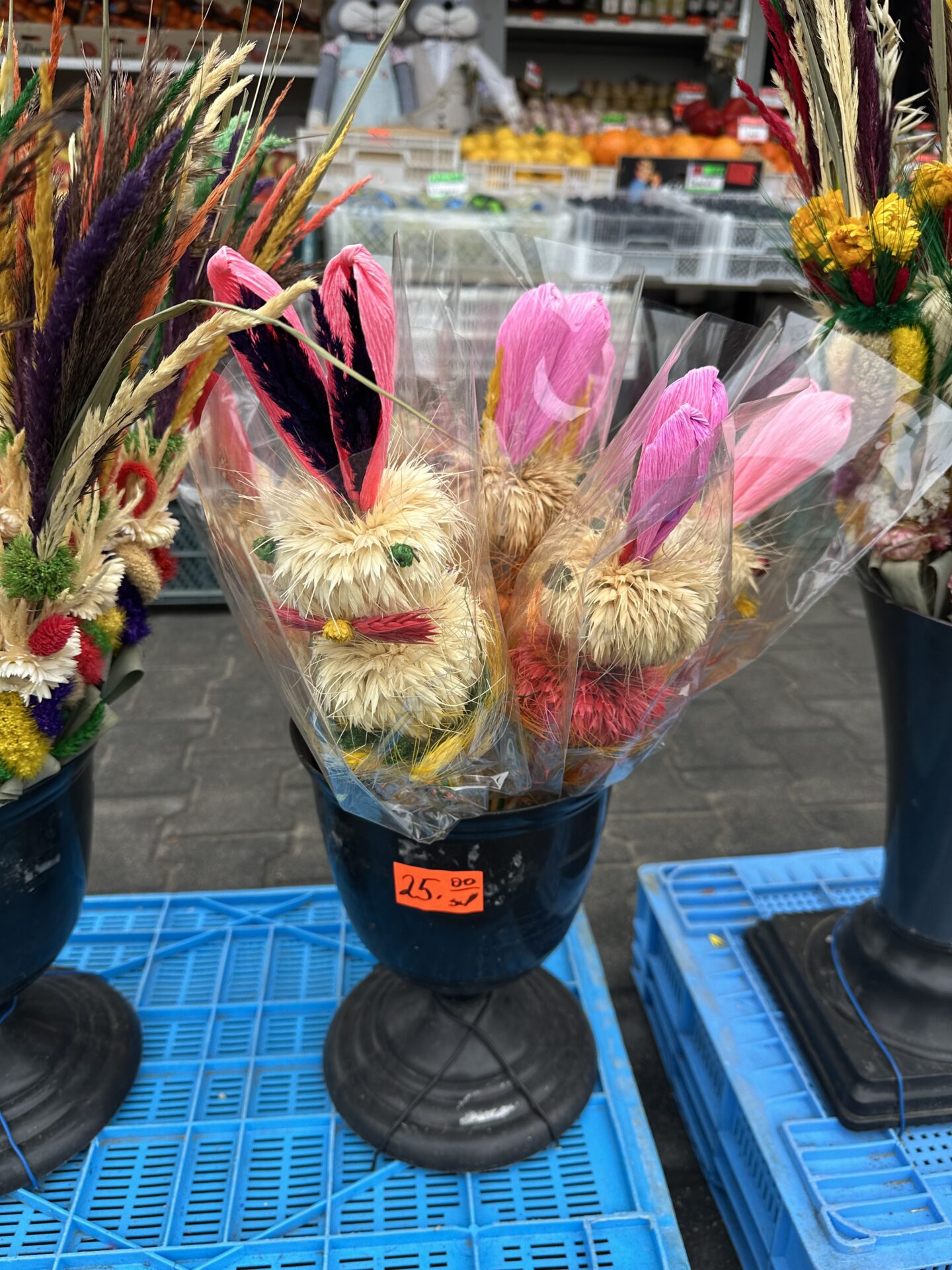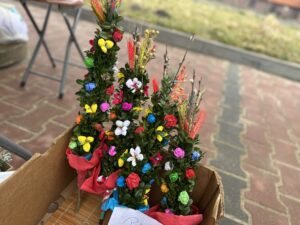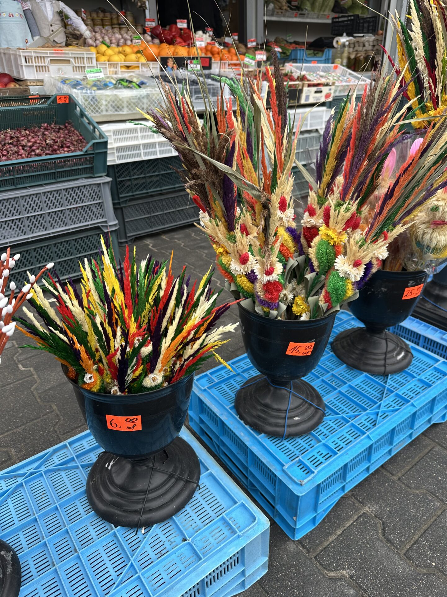 Na straganach nie brakuje ręcznie wykonanych dekoracji. Kolorowe palmy wielkanocne, misternie zdobione pisanki czy wiosenne wianki pokazują, jak dużo serca lokalni twórcy wkładają w swoje wyroby. Wiele z nich to prawdziwe małe dzieła sztuki – wykonane z naturalnych materiałów, pełne barw i tradycyjnych motywów.