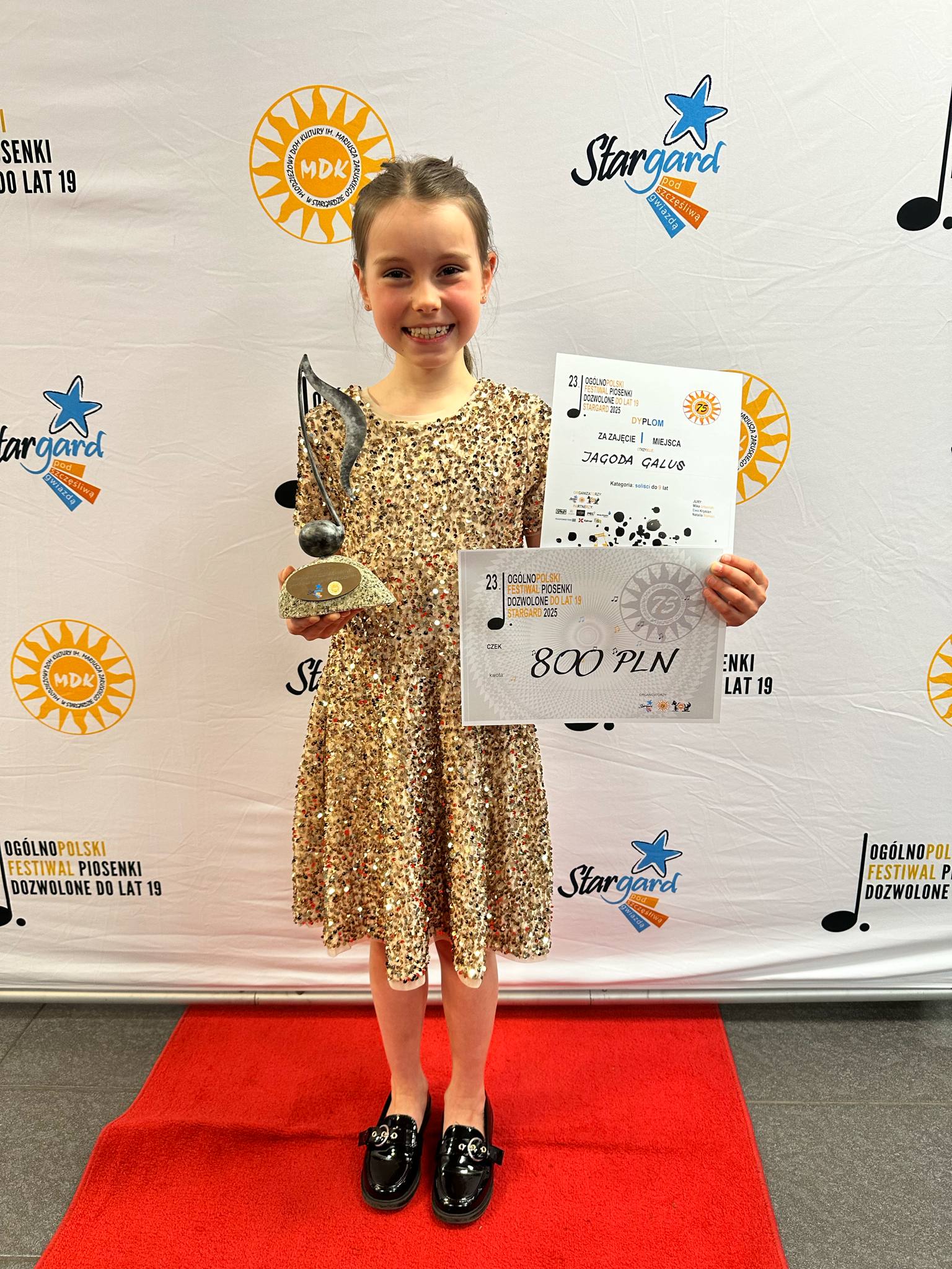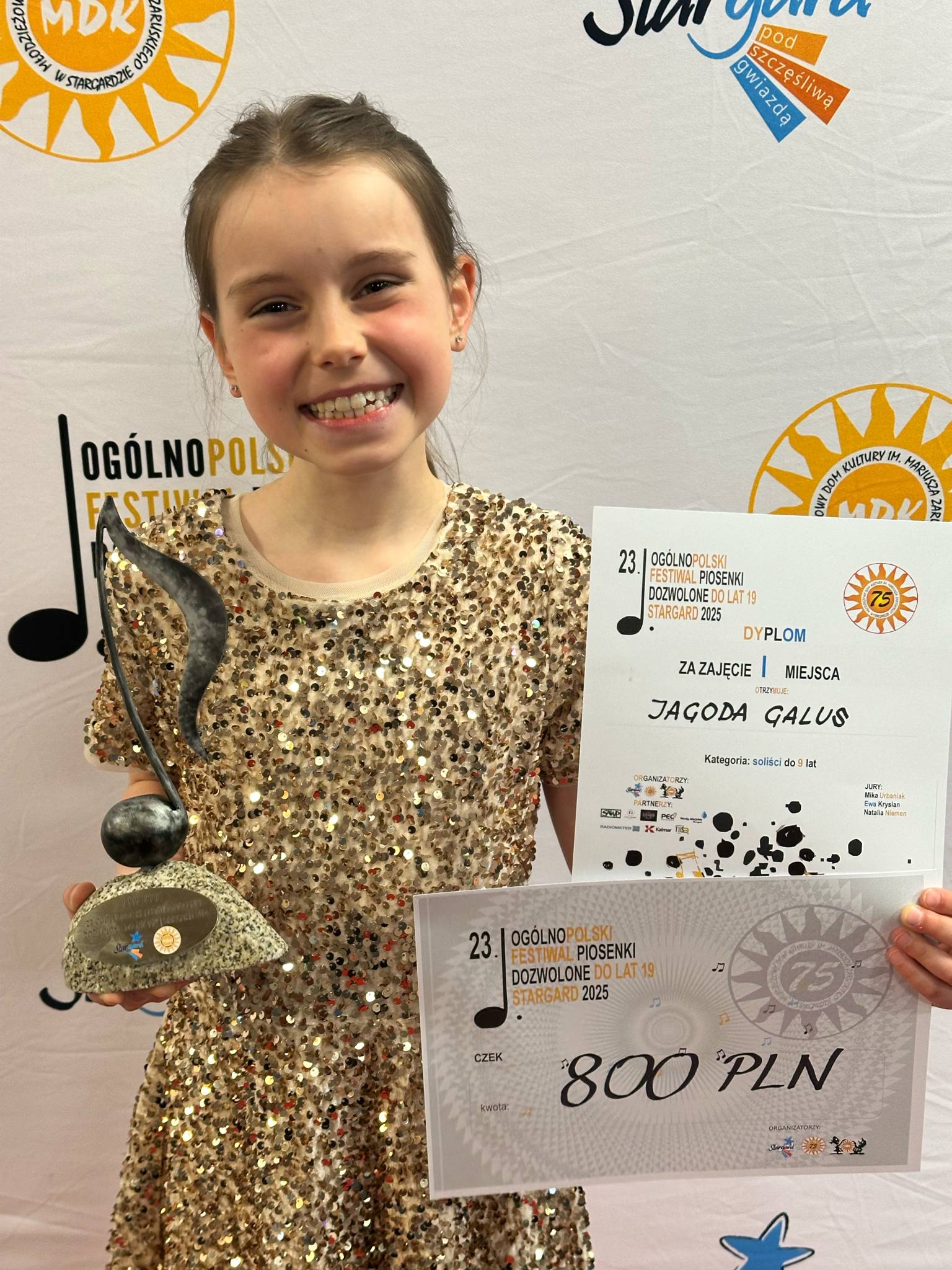 Jagoda zachwyciła swoim talentem i zdobyła pierwsze miejsce w kategorii solistów do 9 lat. Jej występ doceniło zarówno jury, jak i publiczność – pełen emocji, uroku i czystej muzycznej radości.