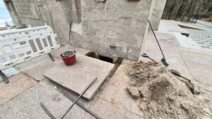 Jakie tajemnice kryją podziemia Pomnika Zaślubin? Na skutek ulewnego deszczu i powstałej awarii możliwe było wejście do wnętrza pomnika.