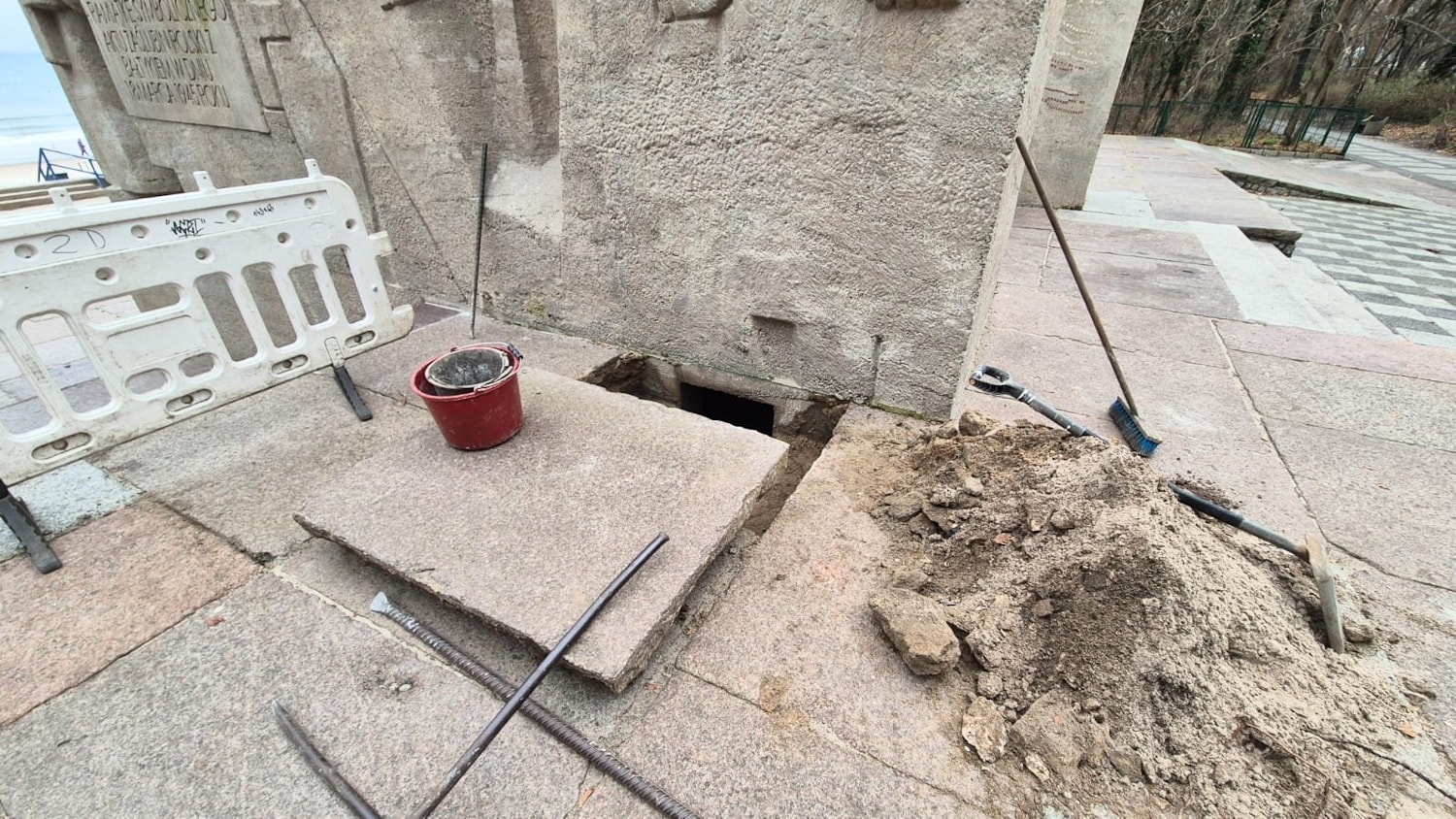 Dzięki temu, historycy próbowali zweryfikować także jedną z miejskich legend. Jaką? Pomnik Zaślubin z Morzem odsłonięto w 1963 roku. Zanim go wybudowano, wewnątrz fundamentu umieszczono drewnianą skrzynię, tzw. kapsułę czasu, co jako pierwszy w 1998 roku opisał Jerzy Patan,. Do środka pomnika prowadzą dwa oznaczone wejścia, które podczas badań pomnika udało się odnaleźć w ramach projektu prowadzonego przez Roberta Dziembę. Teraz nadarzyła się okazja do wejścia do wnętrza pomnika. W wyniku ostatniego ulewnego deszczu, doszło do podmycia jednej z płyt przy zachodniej ścianie monumentu i za zgodą miejskiego konserwatora zabytków Zieleń Miejska przystąpiła do naprawy uszkodzeń. Okazało się, że faktycznie, pod oznaczoną płytą jest wejście do wnętrza pomnika. Rekonesans w środku przeprowadziło Muzeum Oręża Polskiego wspólnie z Grupą Eksploracyjno-Poszukiwawczą „Parsęta” na czele z Janem Orlińskim, po zgodzie wydanej przez prezydent Anny Mieczkowskiej.