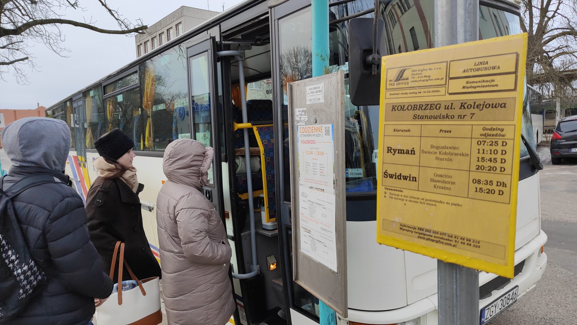 Wspólnie z przedstawicielami PKS Gryfice starosta kołobrzeski Mirosław Tessikowski wraz z wicestarostą Jackiem Kusiem podpisali umowę na świadczenie usług transportu zbiorowego o charakterze użyteczności publicznej. To ważny krok w kierunku lepszej dostępności i mobilności mieszkańców mniejszych miejscowości z Gminy Siemyśl oraz Gminy Rymań o czym już kilka dni wcześniej mówili nam wójtowie obu gmin. Zgodnie z umową od poniedziałku 16 lutego, ruszyła nowa linia autobusowa Kołobrzeg – Rymań na trasie przejazdu: Kołobrzeg ul. Kolejowa – Zieleniewo- Przećmino – Błotnica – Niemierze – Budzimskie – Bogusławiec – Drzonowo – Paprocie – Kędrzyno – Byszewo – Morowo – Świecie Kołobrzeskie – Jarkowo – Kinowo – Starnin – Rzesznikowo – Rymań ul. Szkolna.