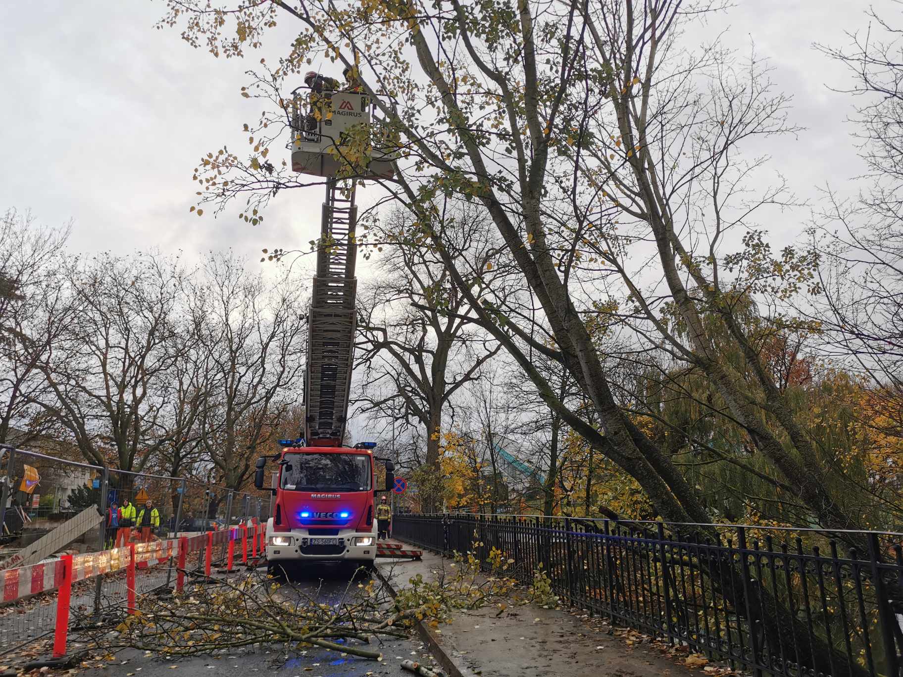 Pomińmy już fakt tak „błyskawicznej” odpowiedzi, skoro zgłoszeniem zajęto się 6 listopada. Skupmy się jednak na słowach o braku potrzeby natychmiastowej interwencji. Jak duże było więc dziś nasze zdziwienie, gdy na miejscu pojawiła się straż pożarna, która usuwała część drzewa opierającą się o most. Jak poinformował portal Miastokolobrzeg.pl interwencja strażaków poprzedzona została wezwaniem od przedstawiciela Wód Polskich, który dziś pojawił się na miejscu.
