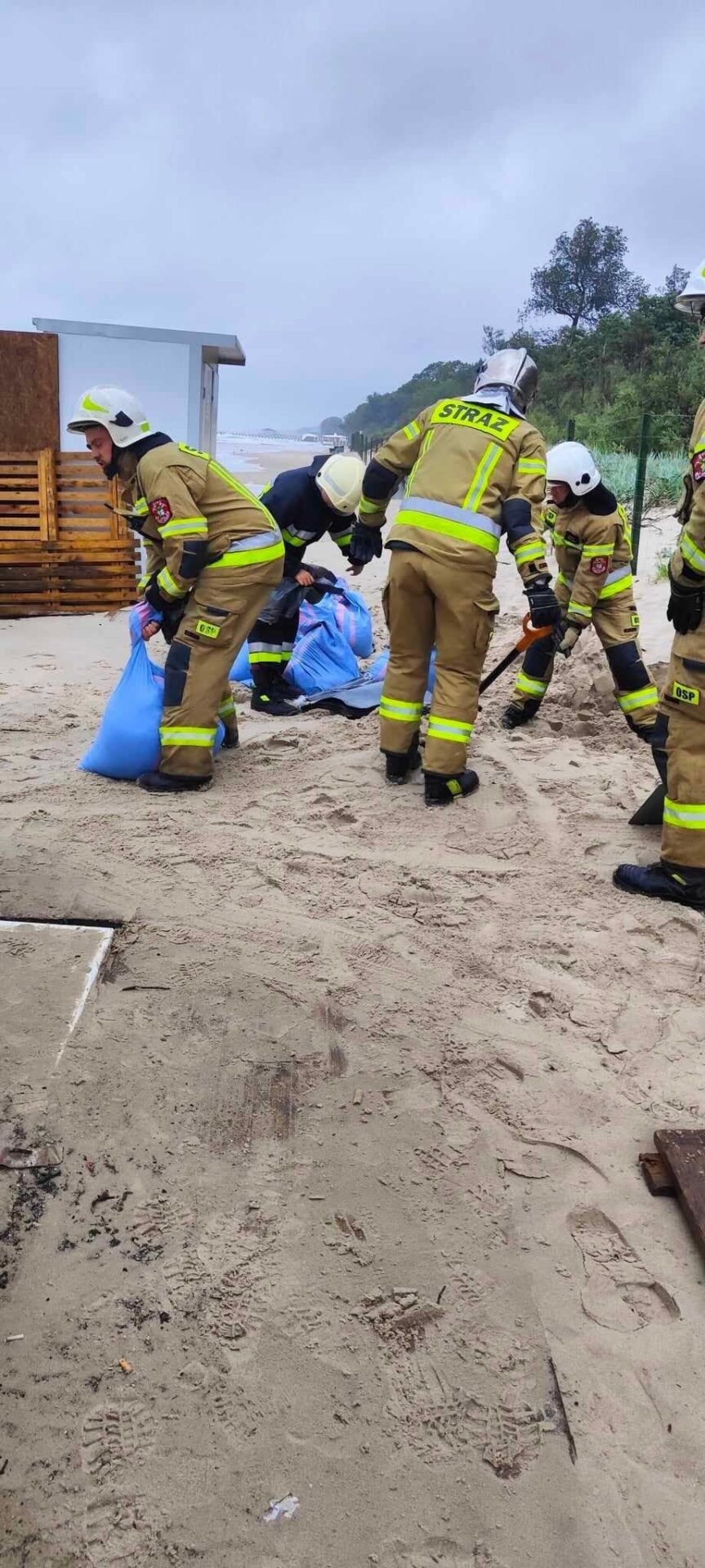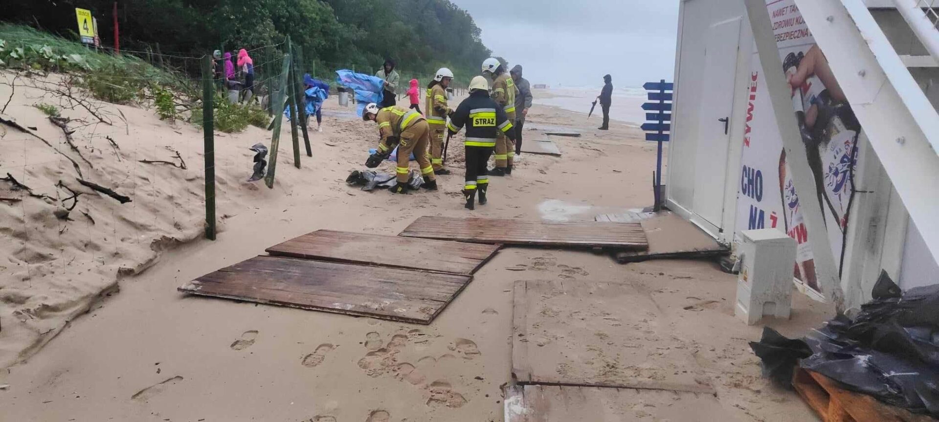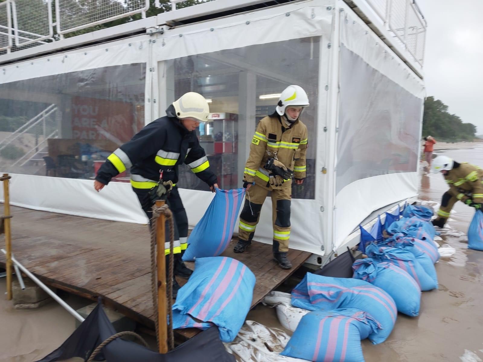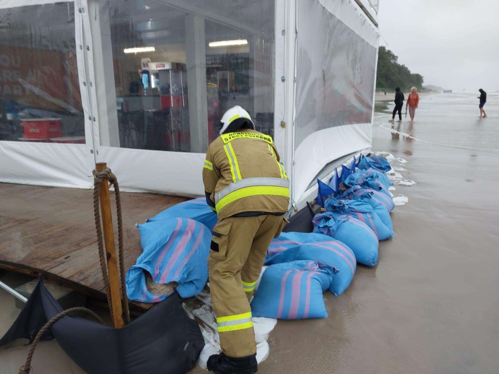 Pełne ręce roboty mają strażacy, którzy interweniują głównie w związku z powalonymi drzewami i zalanymi posesjami. W Ustroniu Morskim drzewo rosnące przy promenadzie przewróciło się na posesję, uszkodziło przy tym elewację budynku, a jeden z konarów przebił dach. Z żywiołem walczyli również na plaży, gdzie morze zalewało beach bar. Do pracy włączyli się ich pracownicy i strażacy z regionalnych jednostek OSP.