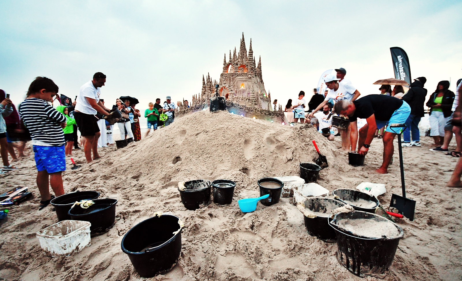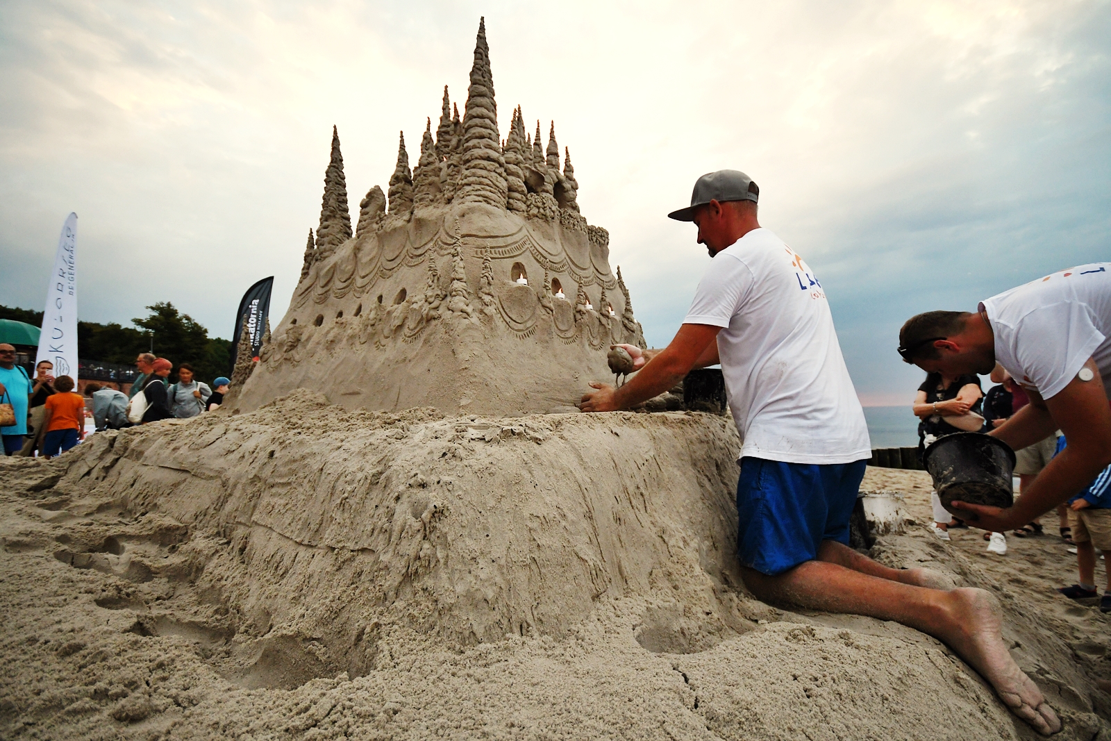Budowa trwała od 8.00 rano do 20.00. Czy udało się pobić rekord? Tak. Zamek ostatecznie ma 3,20 m wysokości, co czyni go największą budowlą z piasku, jaka powstała w Kołobrzegu.