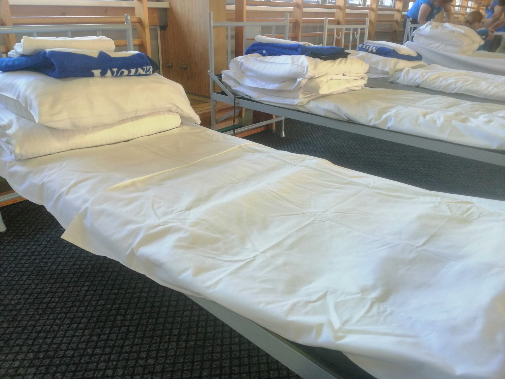 36 łóżek przygotowano w hali Łuczniczka. Właśnie w tym miejscu w Kołobrzegu powstał tymczasowy punkt przyjęcia uchodźców.