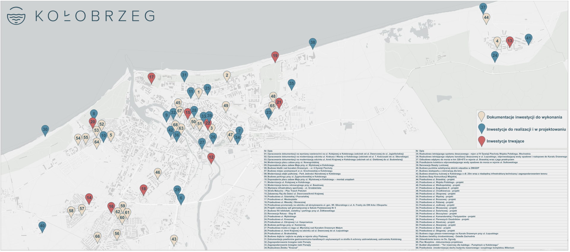 Magistrat zakłada realizację 68 zadań za 65 milionów złotych. 29,5 mln ma pochodzić z funduszy zewnętrznych, m.in. w ramach „Polskiego Ładu”. Co znalazło się na liście prac? Najpóźniej w maju zakończy się przebudowa ulicy Obrońców Westerplatte. Z kolei po sezonie ruszą prace na Zdrojowej. Urzędnicy chcą w ten sposób uniknąć dodatkowych utrudnień w tej części miasta. W tym roku miasto wykona zapowiadaną przebudowę ul. Armii Krajowej na odcinku od Dworcowej do Łopuskiego. Do 6 października zakończy się natomiast przebudowa promenady na odcinku od Kamiennego Szańca do Ekoparku. Tu niestety nie uda się uniknąć prowadzenia robót w czasie wakacji. W drugiej połowie roku rozpocznie się z kolei budowa parkingu przy ulicy Zygmuntowskiej. Nie jest jeszcze znany termin rozpoczęcia przebudowy mostu na ul. Młyńskiej. Urzędnicy czekają na wykonanie dokumentacji projektowej, natomiast stan mostu nie pozwala na odkładanie tej inwestycji.
