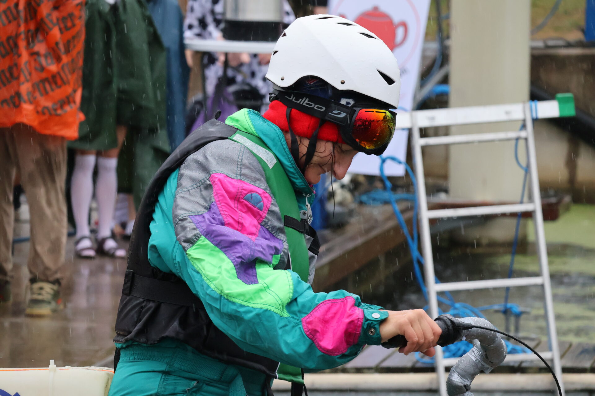 Padający deszcz nie powstrzymał jednak pięciu śmiałków przed pokonaniem całego dystansu 21 metrów. Ostatecznie po dogrywce zwycięzcą zawodów został Marcin Szczeliniak z Krakowa. Pomimo kiepskiej aury, atmosfera w czasie rywalizacji była gorąca. W tym roku uczestnicy imponowali też przebraniami. Był Neptun, bóbr, marynarz, a mistrz wybrał bardzo oryginalne przebranie za rolkę papieru toaletowego. Każdy bez względu na przejechany dystans wpadał do wody w kołobrzeskiej marinie. Na zmarzniętych czekała herbata i czajnik wrzątku. W tym roku publiczność mogła poczuć się podobnie jak zawodnicy, każdy, kto pojawił się w porcie był mokry. Nikt jednak nie narzekał.