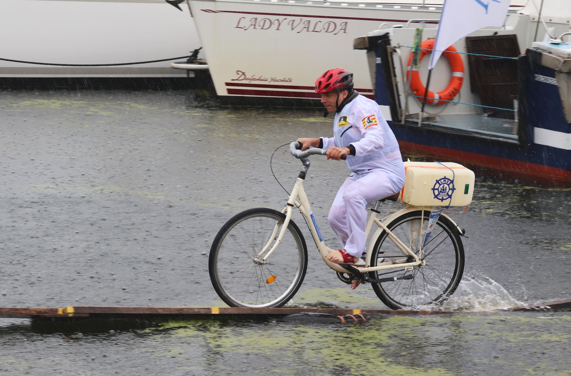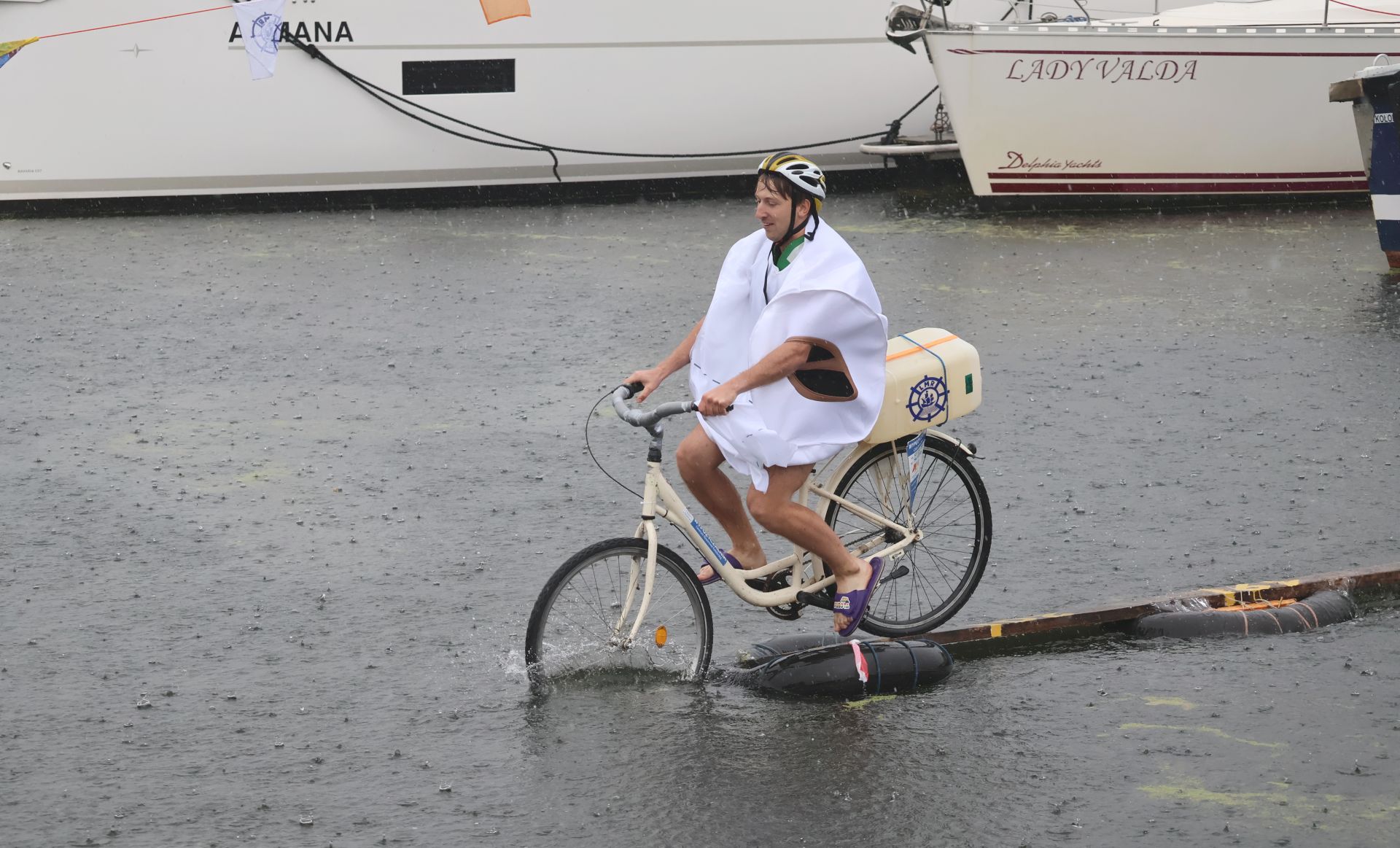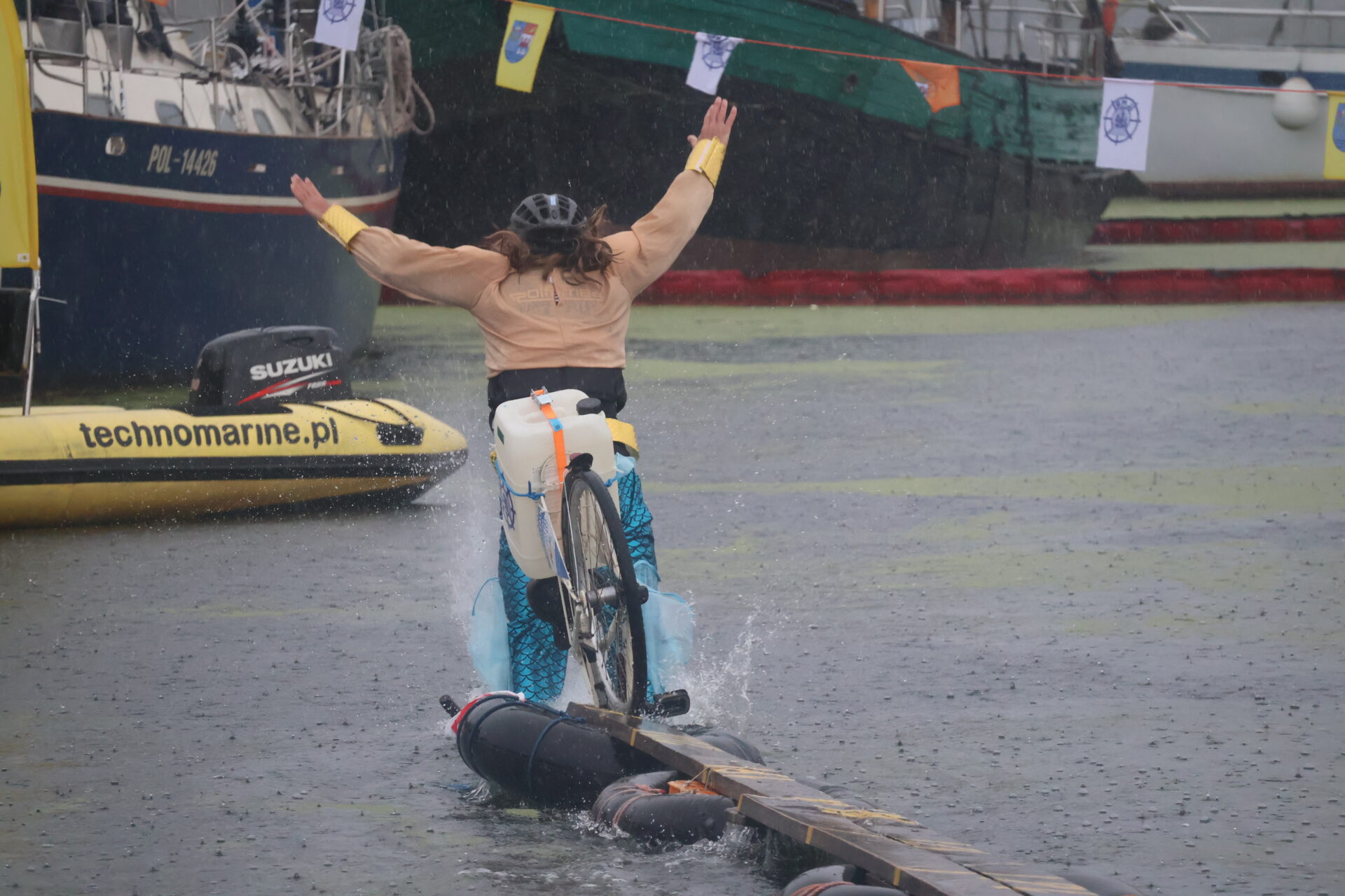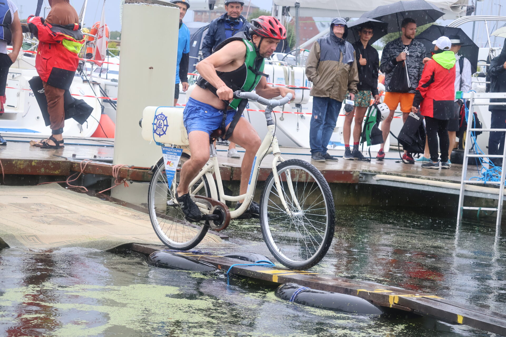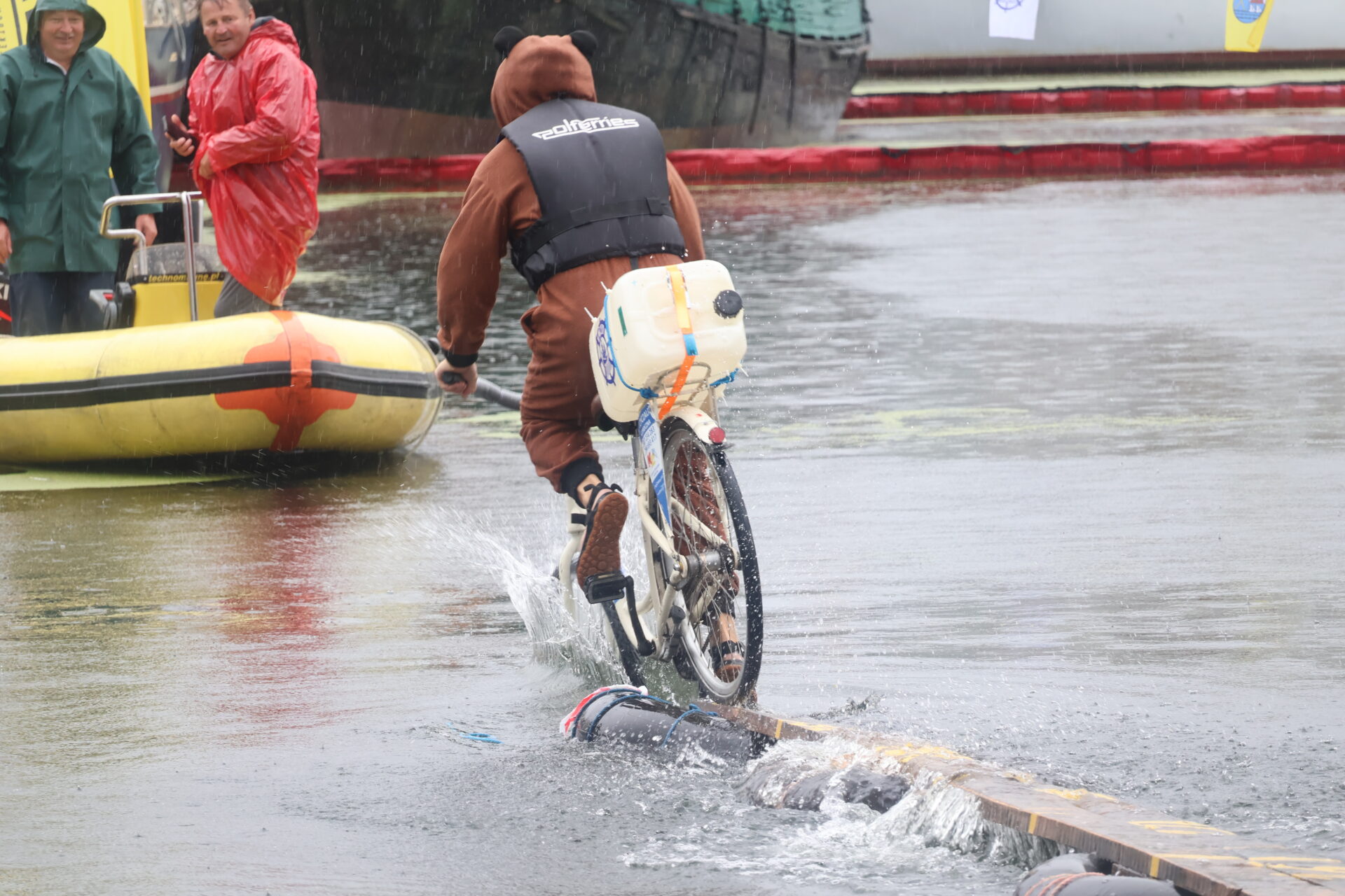 Ulewa nie wystraszyła uczestników 26. edycji zawodów w jeździe rowerem po desce na wodzie. Jak podkreślają weterani tej rywalizacji, tak ekstremalnych warunków sobie jednak nie przypominają.