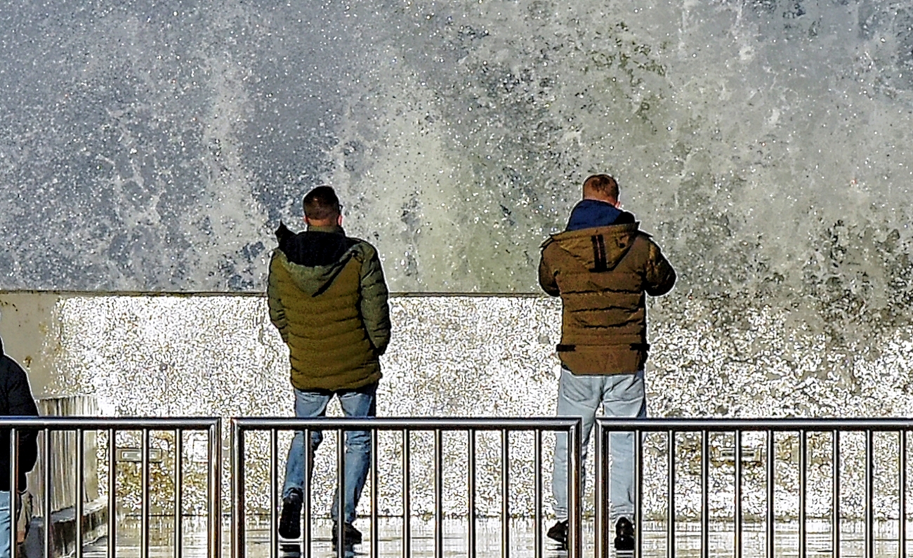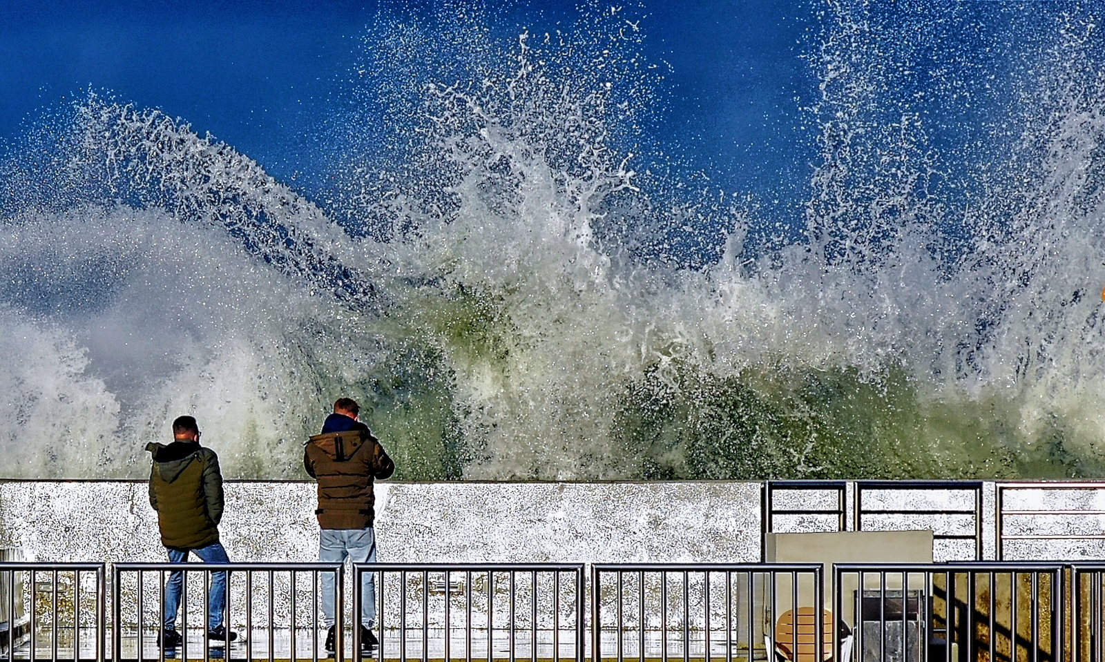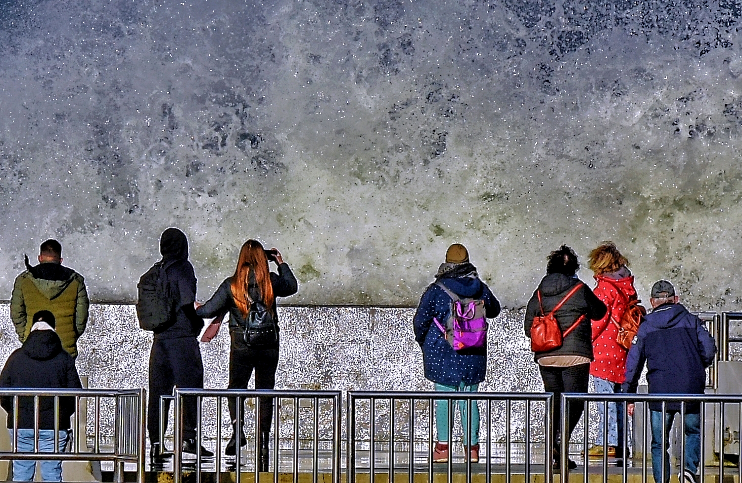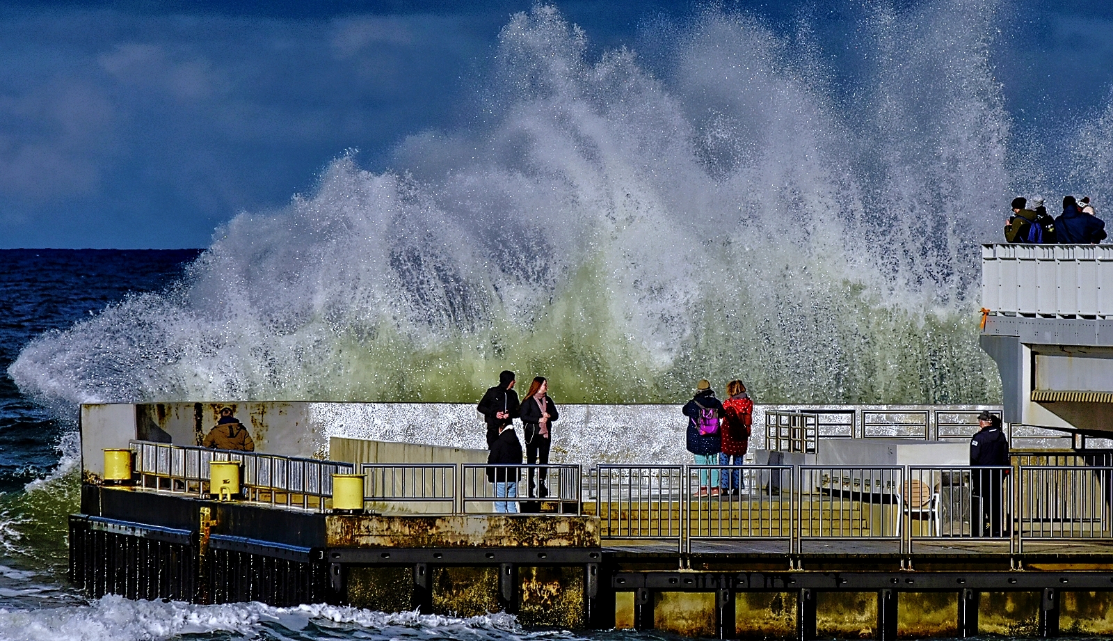 Podobnie było także w środowe popołudnie, gdy na molo zbierali się turyści wykonujące pamiątkowe zdjęcia. Chociaż samo morze nie wyglądało na mocno wzburzone, to przy molo można było podziwiać widoki, jakie spotykane są najczęściej podczas mocnych sztormów. Część turystów podchodziło pod samą ściankę molo najwyraźniej nie zdając sobie do końca sprawy z siły Bałtyku. Piękne zjawisko uchwycił nasz fotoreporter Karol Skiba, który w odróżnieniu od spacerowiczów fotografował molo z oddali.