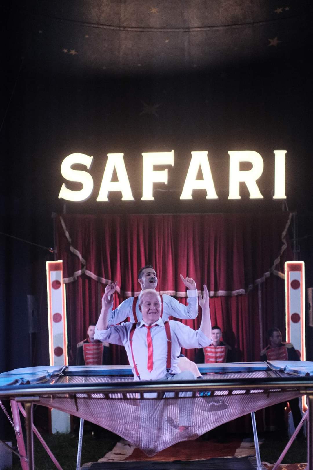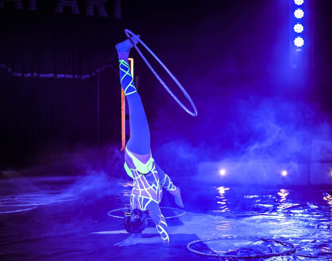?Pod cyrkowym namiotem zobaczycie Państwo akrobacje na szarfach i linie pionowej, brawurowi kaskaderzy zaprezentują zabawną groteskę akrobatyczną i szalone skoki na batucie (trampolinie), w unikatowych rytmach zobaczycie taniec z obręczami hula-hop i niebezpieczne fire show.