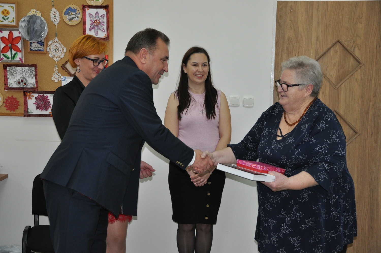 Seniorów odwiedził starosta kołobrzeski Tomasz Tamborski wraz z członkiem Zarządu Powiatu Agnieszką Bany oraz wójtem Gminy Siemyśl Markiem Dołkowskim. Obecnie w stowarzyszeniu aktywnie działa 21 seniorów z Gminy Siemyśl. Opiekunką i terapeutką jest Pani Anna Cygan, a Przewodniczącą Pani Janina Poleszak. Spotkanie integracyjne było zorganizowane z okazji Dnia Seniora oraz Dnia Edukacji Narodowej, gdyż wśród członków klubu są również nauczycielki. Z tej okazji starosta wręczył na ręce przewodniczącej drobny upominek wraz z życzeniami i zapowiedział, że odwiedzi seniorki w grudniu przy wspólnym lepieniu pierogów.