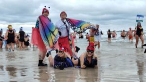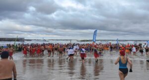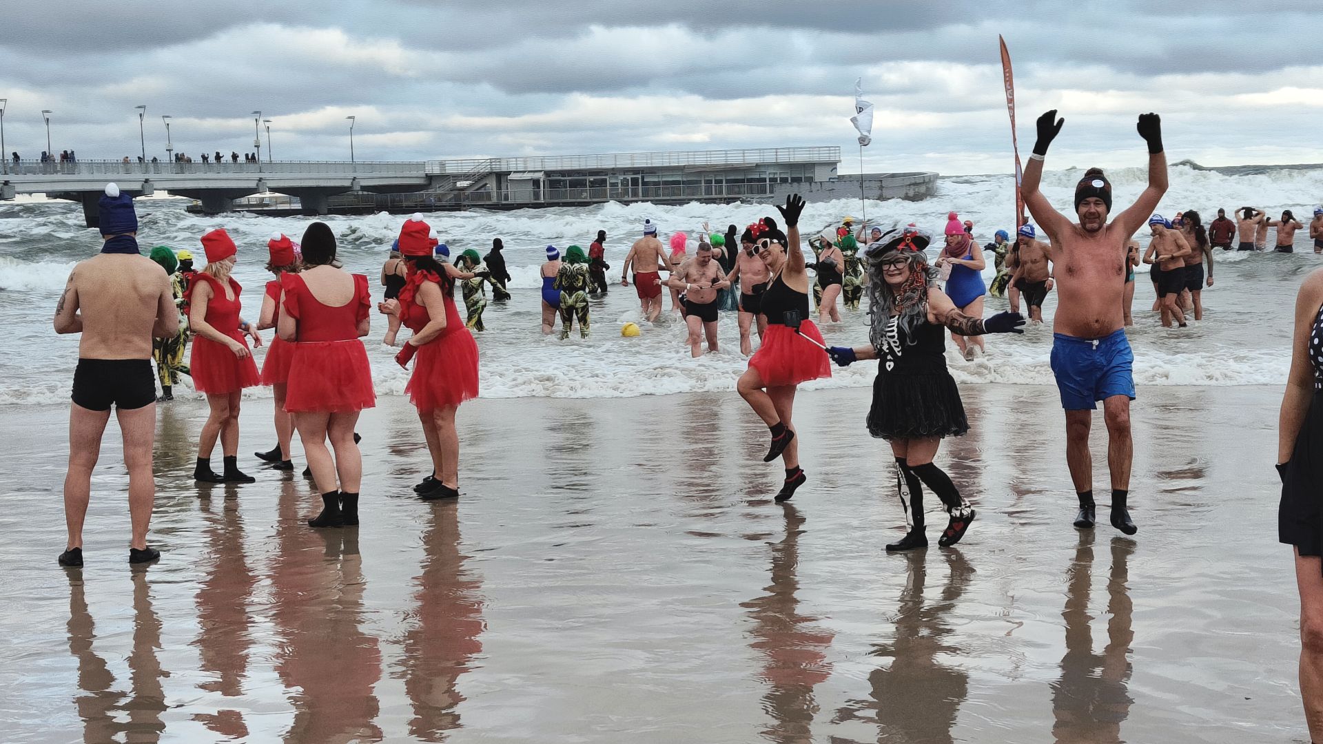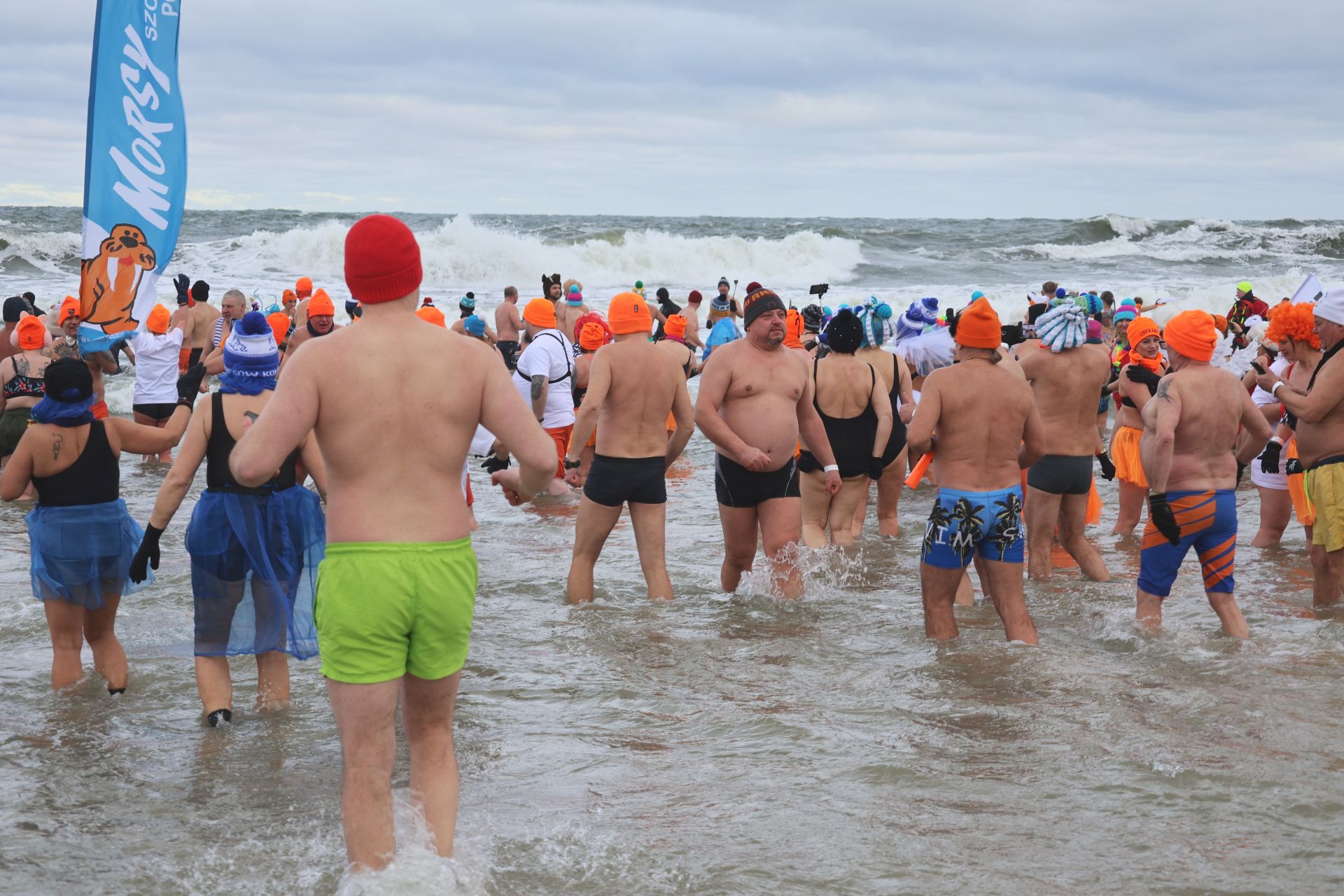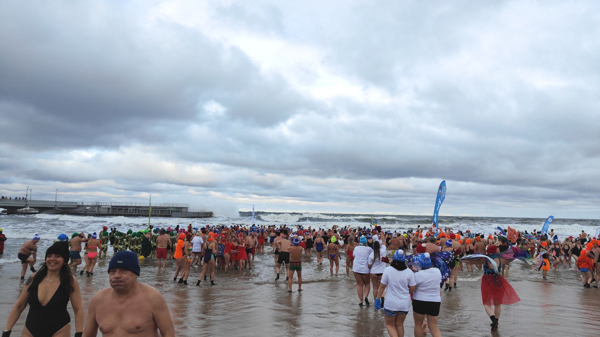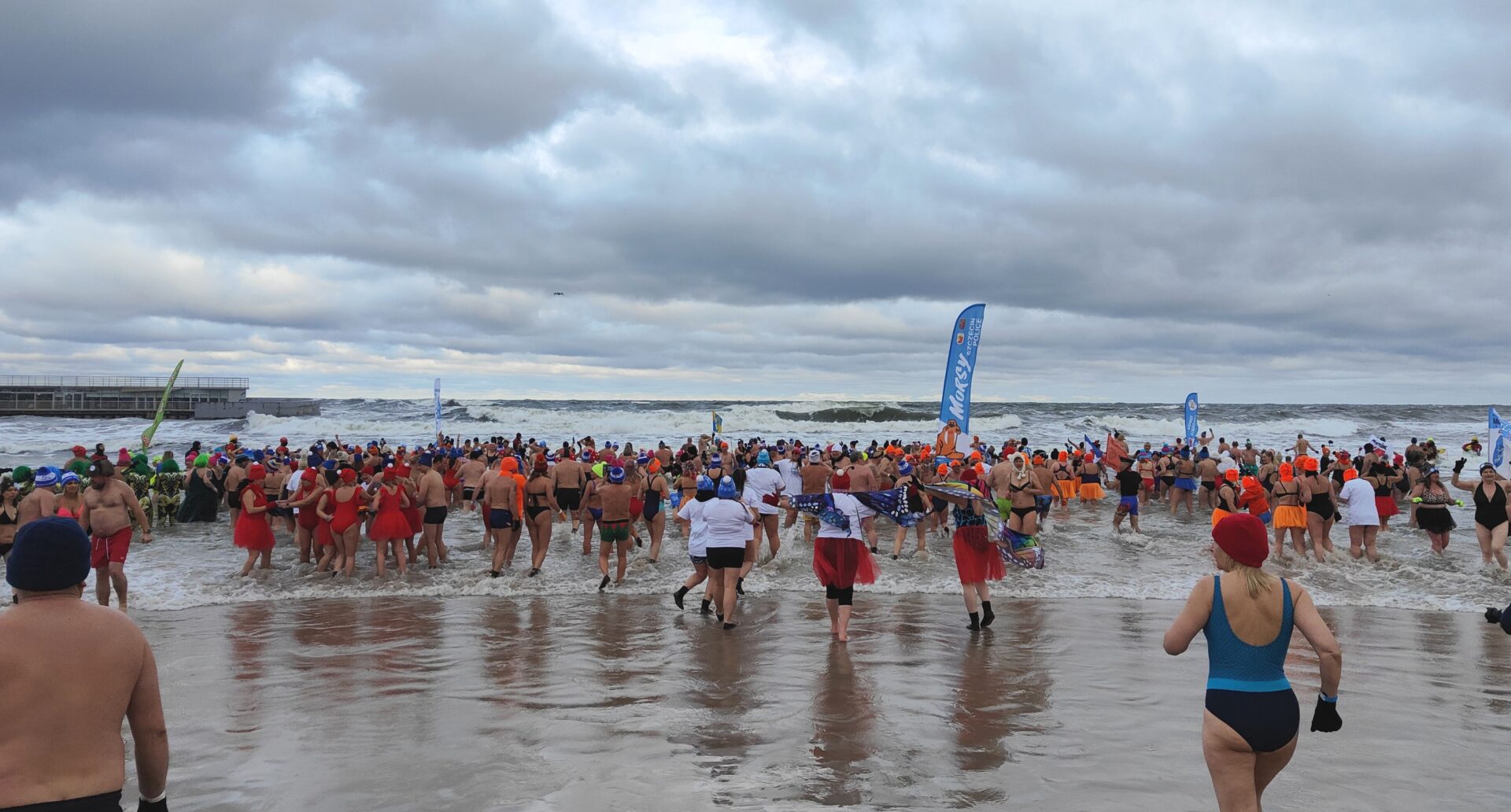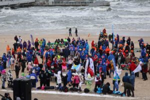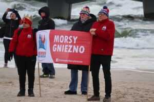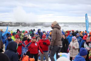 Kilkaset osób weszło do wody na plaży przy molo – nie przeszkadzała im temperatura, wiatr i fale. Mowa oczywiście o morsach, które zjechały się do Kołobrzegu z całego kraju.