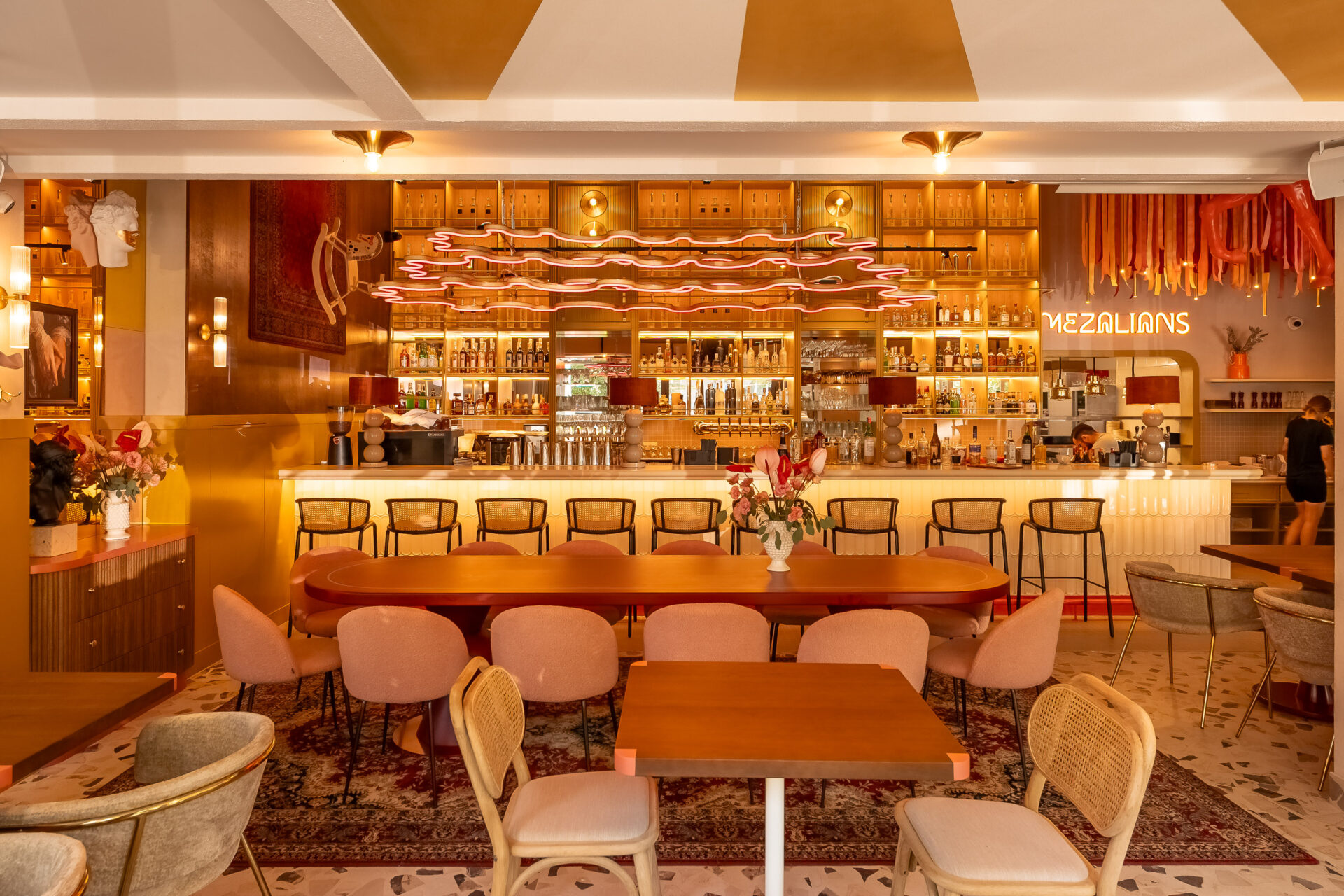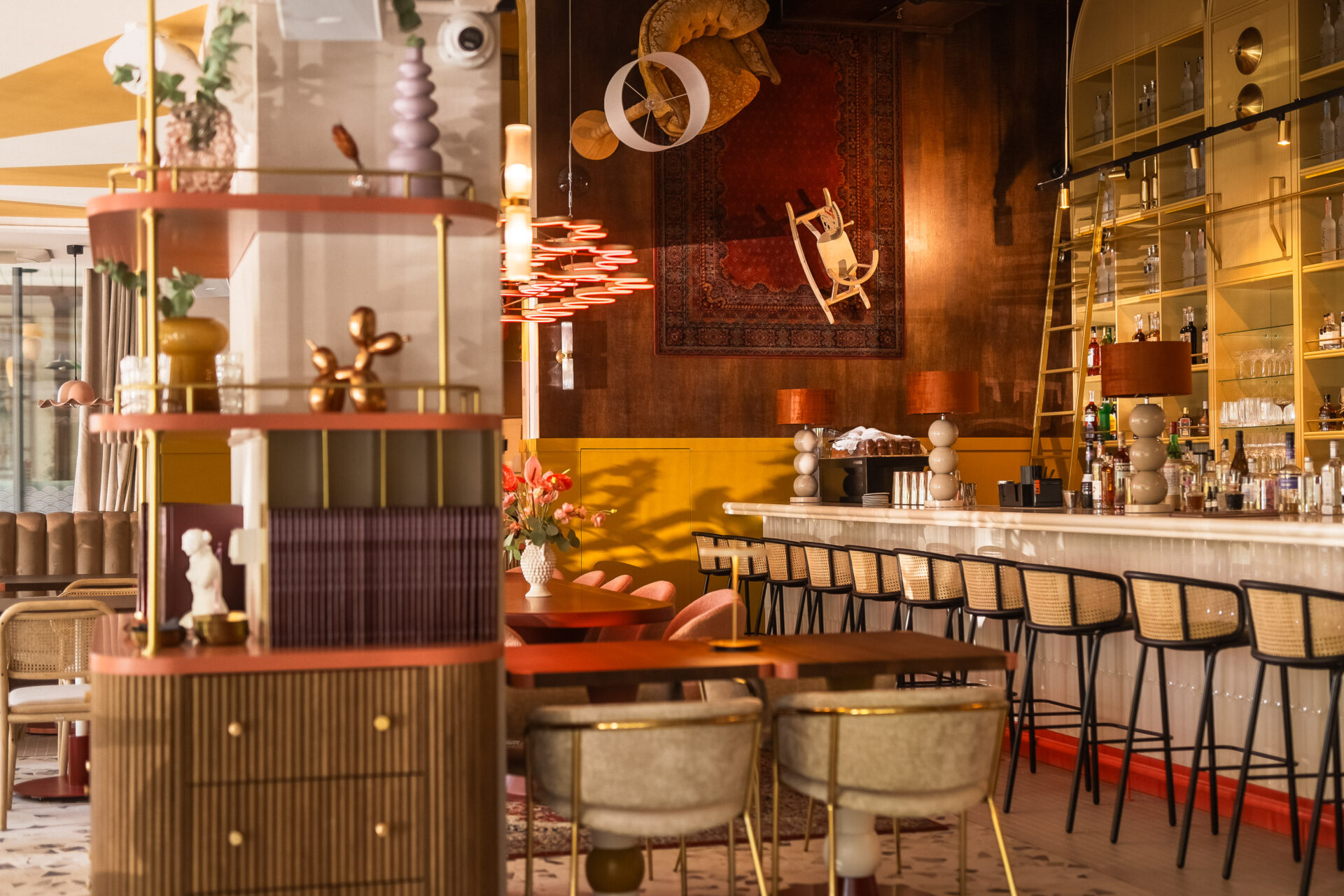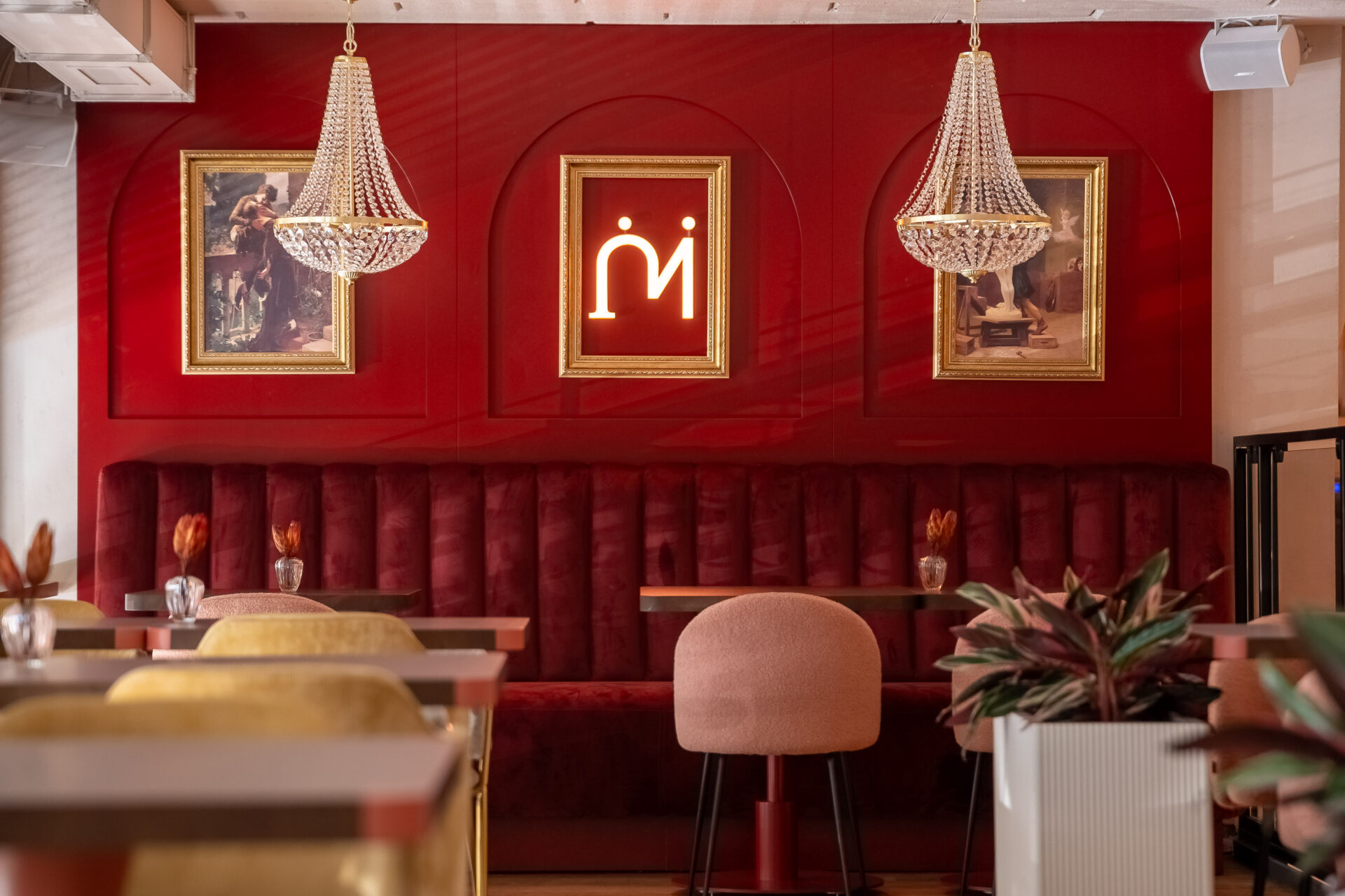 Za projekt Mezaliansu odpowiada warszawskie 370studio, które stworzyło wnętrze pełne kontrastów, łączące elementy klasycznego stylu mid-century z odważnymi, nieoczywistymi detalami – jak podwieszony jednorożec czy odwrócony pokój zamontowany na ścianie baru. Kolorystyka beżów, bordo i różu, długi stół symbolizujący polską gościnność oraz ciepłe, drewniane wykończenia nadają przestrzeni wyjątkowy, harmonijny charakter.