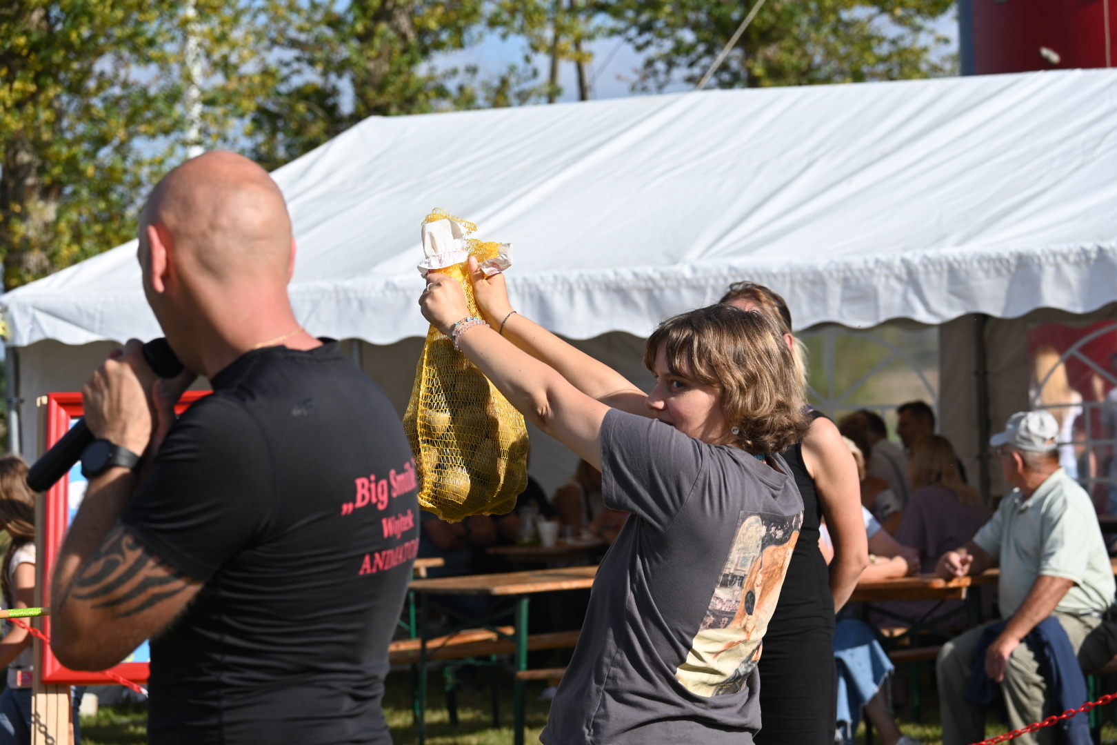 W ostatnią sobotę wakacji na terenie boiska w Karcinie bawiło się wiele osób. Królowały pyszne potrawy z ziemniaka – placki ziemniaczane z gulaszem, szara kluska, pierogi ruskie, frytki czy zakręcona frytka. Na najmłodszych do dyspozycji był dmuchaniec, ścianka wspinaczkowa, kucyk oraz liczne animacje. Nie zabrakło rodzinnych konkurencji, pokazów czy videobudki. Na scenie rządził zaś Mr Góral, DJ Wojtek oraz kubański zespół.