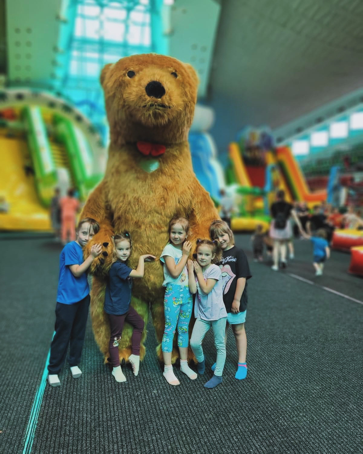 Miś Puchaty podbija serca nie tylko dzieci. Odwiedza gości podczas urodzin, festynów, wesel. Umila czas również przedszkolakom. Ogromna żywa maskotka sprawdza się na każdym rodzaju wydarzenia! Miś ma 2,5 metra. jest w kolorze białym i brązowym. Zmienia ubrania odpowiednio do eventu, potrafi biegać, skakać, tańczyć i przytulać!