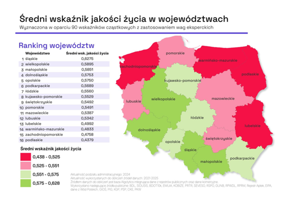 W najnowszym ogólnopolskim rankingu jakości życia, przygotowanym przez Algolytics Technologies we współpracy z Agencją Badawczą SW Research i partnerami, przedstawiono najbardziej przyjazne do życia gminy w Polsce. Analiza oparta na aż 90 wskaźnikach – takich jak zdrowie, edukacja, transport, warunki ekonomiczne czy środowisko – ujawnia wyraźne zróżnicowanie regionalne i wskazuje miejsca, w których komfort codziennego życia osiąga najwyższy poziom.