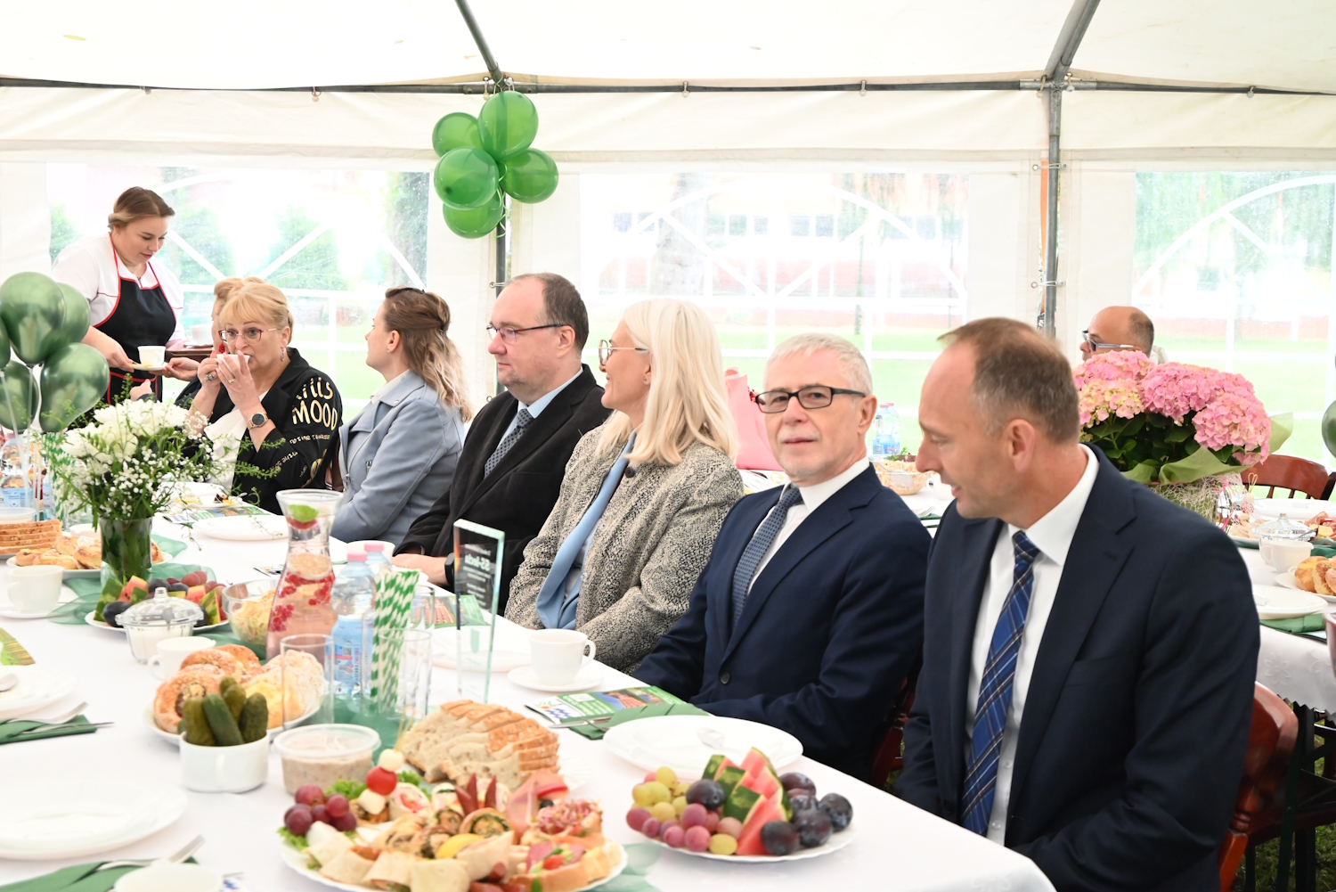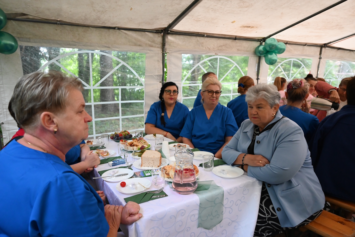 Ten wyjątkowy jubileusz „szmaragdowe gody” był wyjątkowym dniem dla wszystkich pracowników, byłych pracowników i mieszkańców domu. W obchodach wzięło udział wielu zaproszonych gości oraz przyjaciół domu. Uroczystość rozpoczęła przemówieniem dyrektor DPS-u Małgorzata Rzepka-Klincewicz, która podsumowała funkcjonowanie placówki. Obchodzony jubileusz był także okazją do wręczenia podziękowań pracownikom, którzy w placówce pracują ponad 20 lat. Następnie głos zabrali zaproszeni goście oraz samorządowcy. Starosta kołobrzeski Mirosław Tessikowski wraz z wicestarostą Jackiem Kusiem oraz przewodniczącym Rady Powiatu Arturem Wasiewskim wręczyli na ręce dyrektora kwiaty, list gratulacyjny oraz voucher na kwotę 1.000 złotych, ufundowany przez Zarząd Powiatu. W swoim wystąpieniu starosta kołobrzeski podziękował dyrekcji, wszystkim pracownikom oraz wolontariuszom domu za zaangażowanie, troskę i serce, które wkładają w swoją codzienną pracę. – Jestem przekonany, że w kolejnych latach działalności Domu uda się zrealizować wszystkie plany i zamierzenia. Życzę Państwu dużo sił do dalszej efektywnej pracy zawodowej, rozwijania potencjału Domu, satysfakcji z osiąganych sukcesów, a ponadto szczęścia i wszelkiej pomyślności w życiu osobistym – mówił starosta.