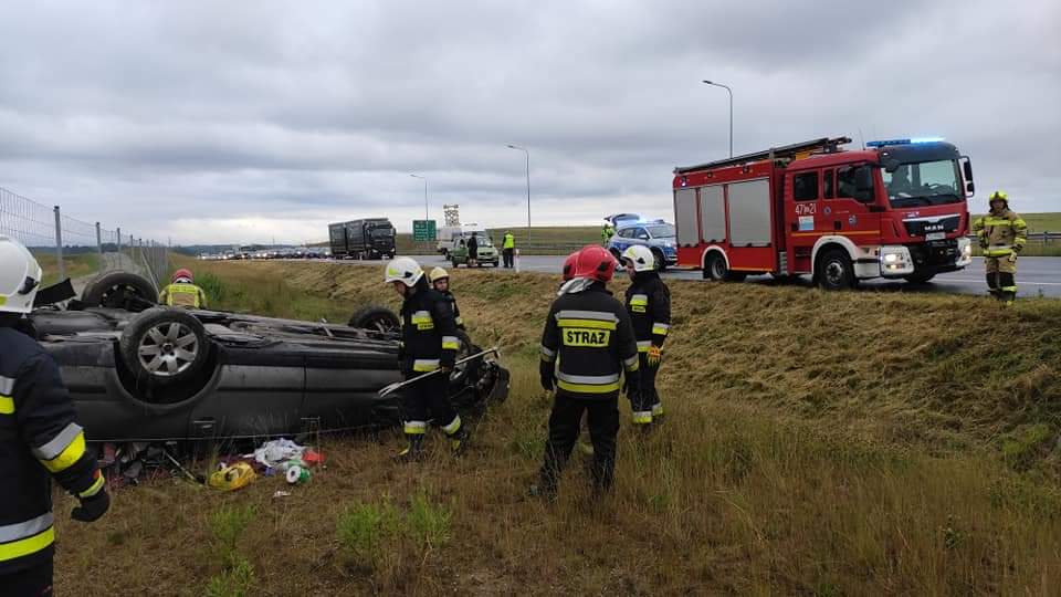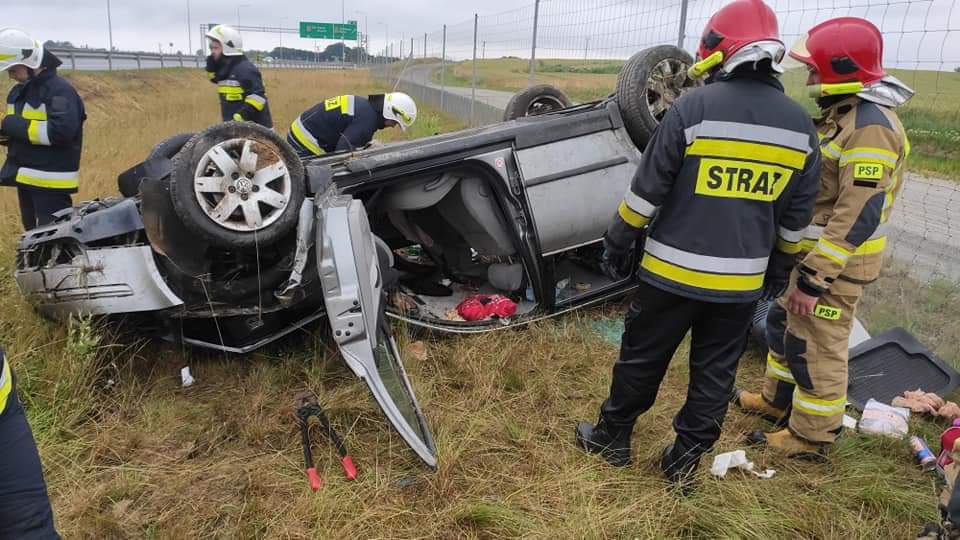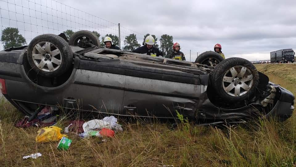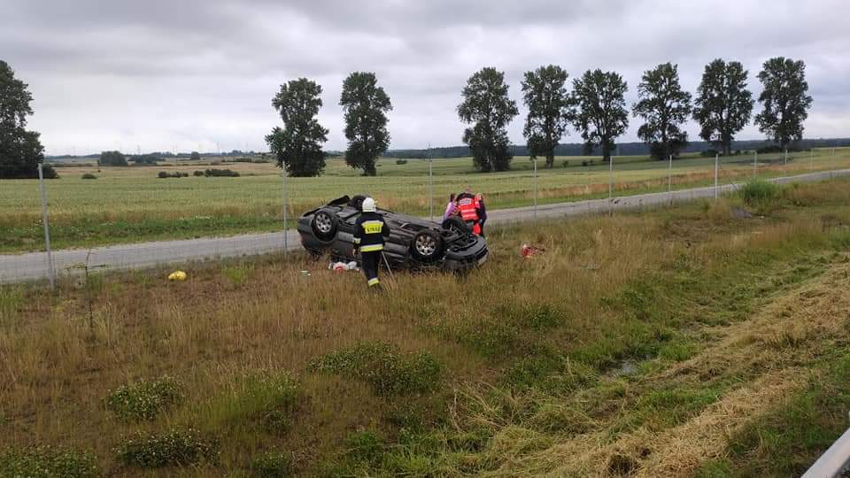 Volkswagen Passat zjechał z drogi i dachował. W środku znajdowały się cztery osoby w tym dziecko. Pomocy potrzebował kierowca VW. Na miejscu pojawiły się dwa zespoły ratownictwa medycznego, strażacy z Kołobrzegu i Charzyna.