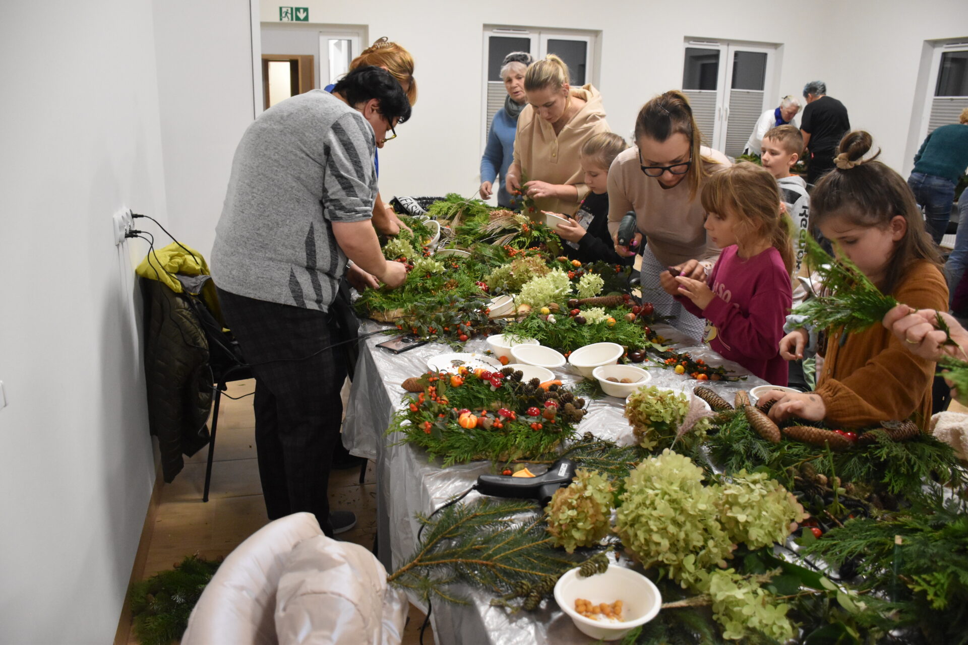 Prawie 40 osób wzięło udział w jesiennych warsztatach zorganizowanych przez szefową Koła Gospodyń Wiejskich – sołtys Olgę Srokę zorganizowanych w świetlicy wiejskiej w Sianożętach.