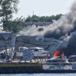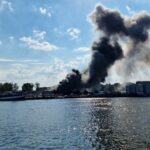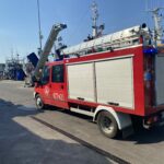 Trwa akcja gaśnicza w kołobrzeskim porcie rybackim.