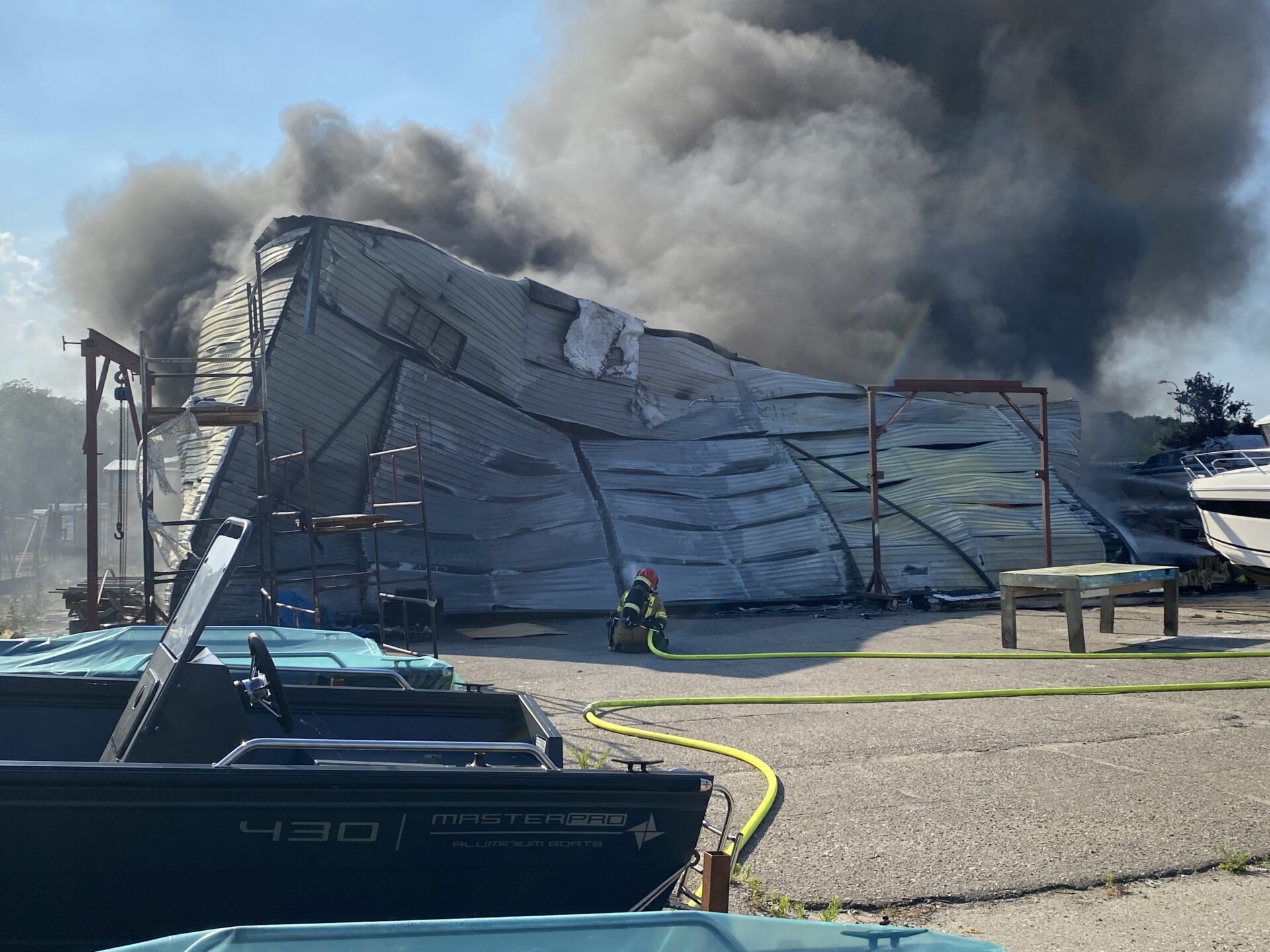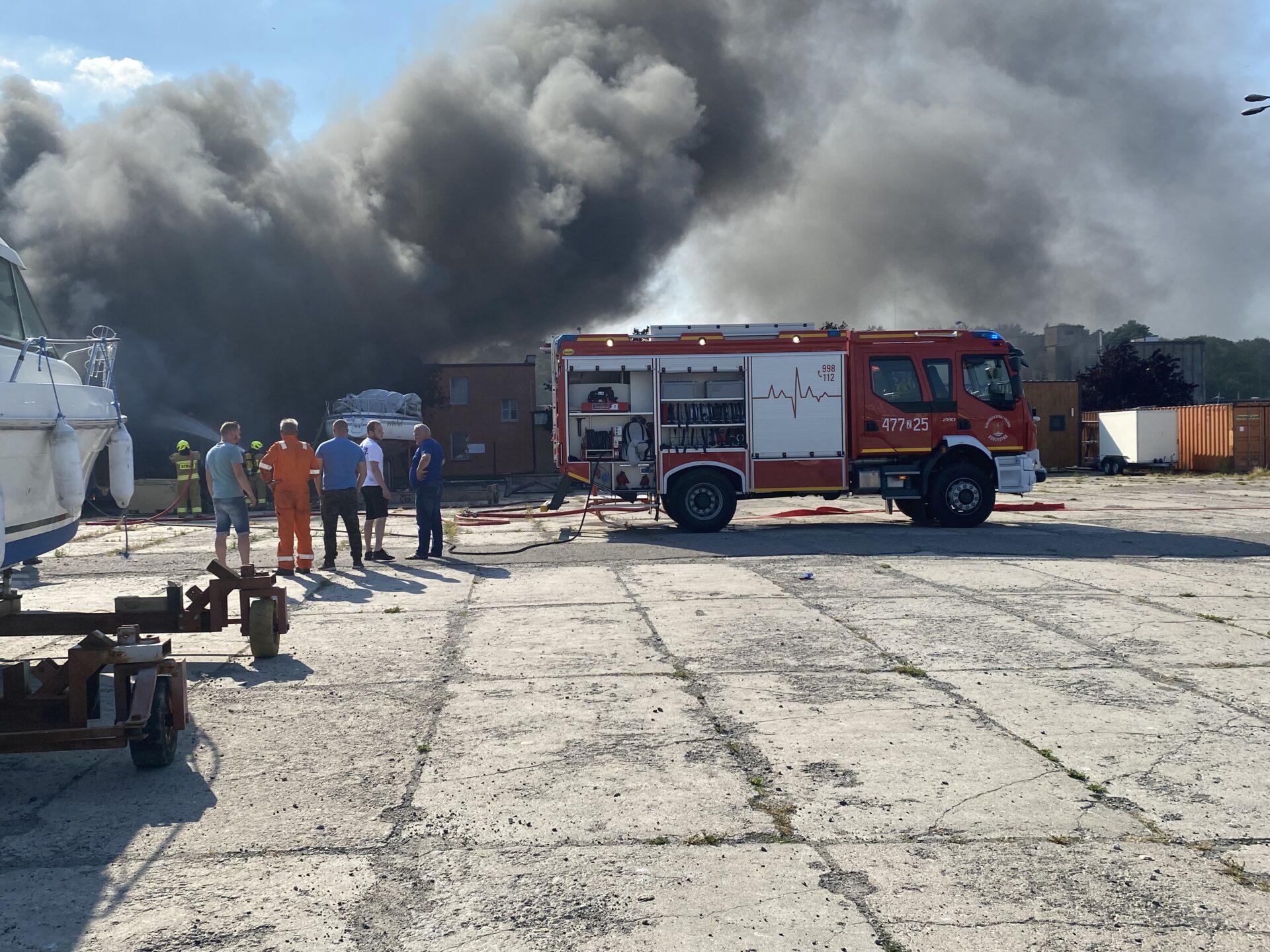 AKTUALIZACJA: W akcji wzięło udział 11 zastępów strażackich, łącznie 50 strażaków. Paliła się hala, w której produkowane są łodzie motorowe. W momencie wybuchu pożaru nikt nie przebywał wewnątrz. Na szczęście nikt nie ucierpiał i skończyło się na stratach materialnych.