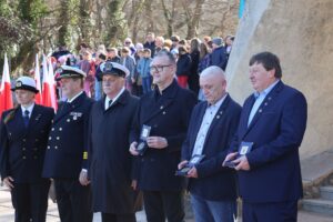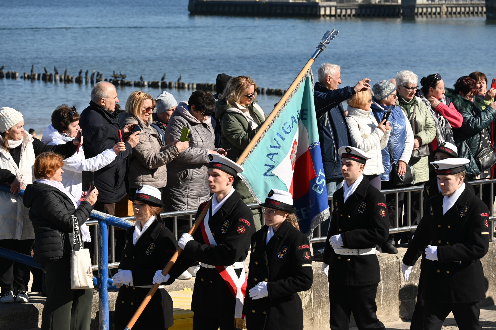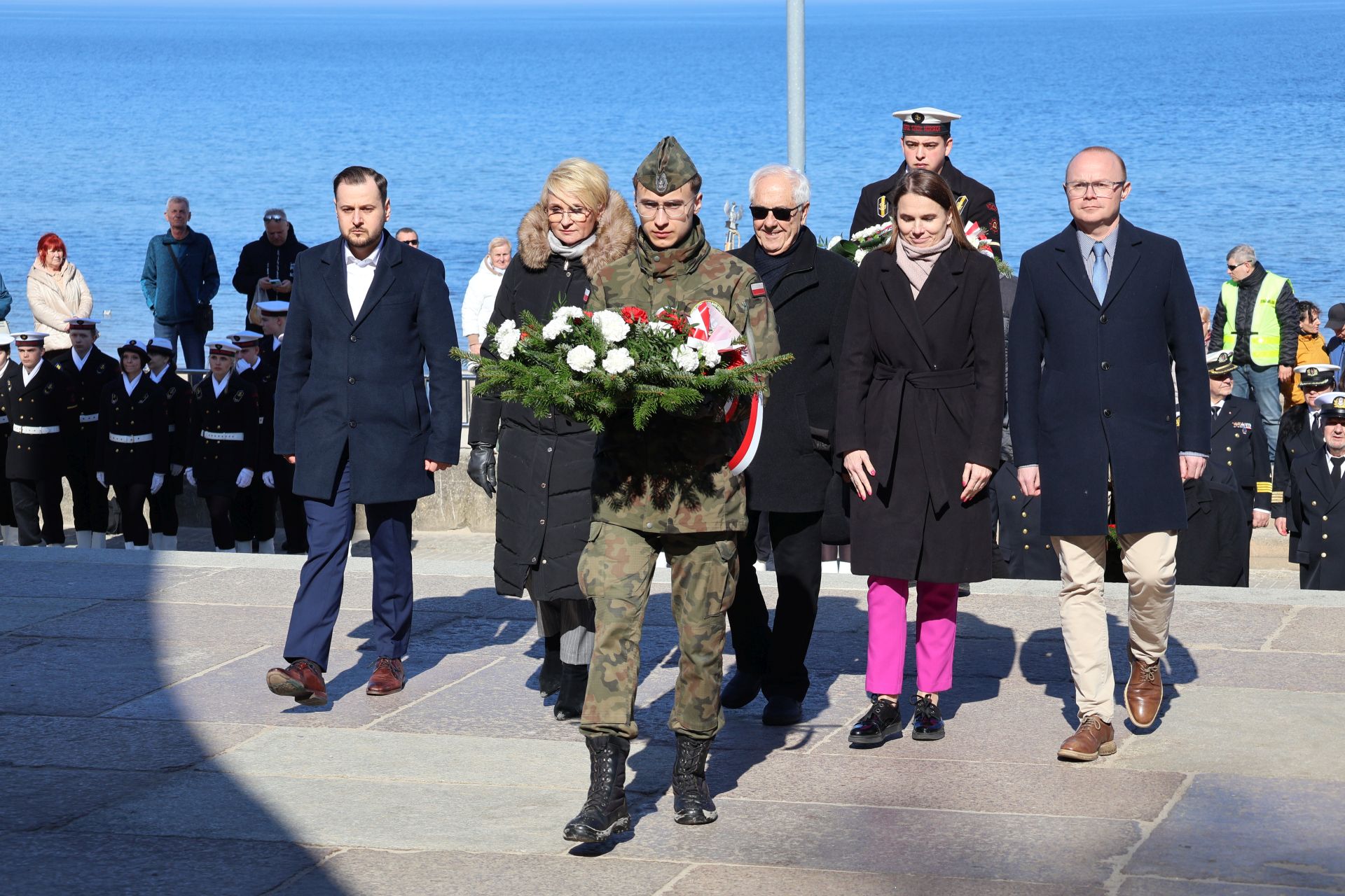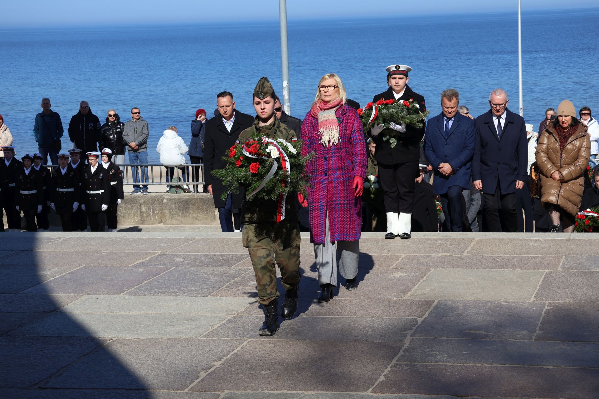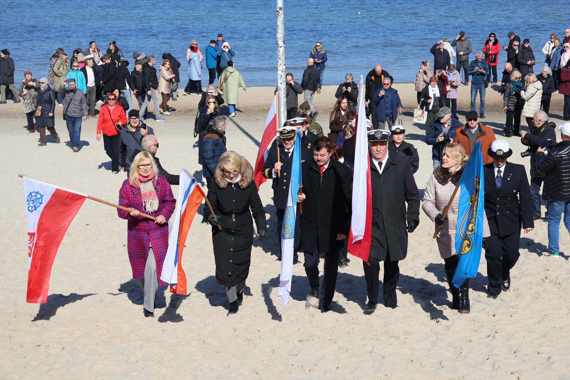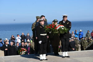 Dziś Kołobrzeg oddaje hołd tym, którzy walczyli o miasto w marcu 1945 roku. Uroczystości rozpoczęto przy Pomniku Zaślubin z Morzem. To tu odbyło się ślubowanie jungów Ligi Morskiej i Rzecznej. Wspominano również uczestników boju o Kołobrzeg i dziękowano tym, którzy włożyli wiele trudu w odbudowę miasta po wojnie. W czasie uroczystości można było zaobserwować ostatnich uczestników walk o Kołobrzeg, a tuż obok najmłodsze pokolenie mieszkańców.  Wydarzenie zaszczycili swoją obecnością: major Bolesław Danielkiewicz oraz porucznicy Edward Róg, Józef Nowak i Józef Kwiatkowski. Przed pomnikiem złożono kwiaty. Nie mogło też zabraknąć symbolicznego zanurzenia flag w wodach Bałtyku.