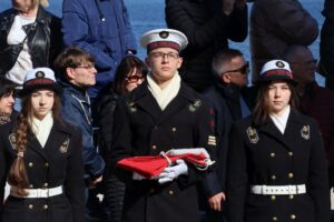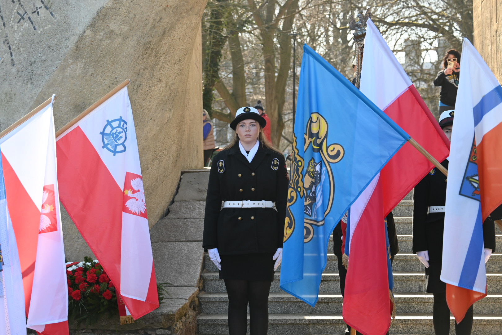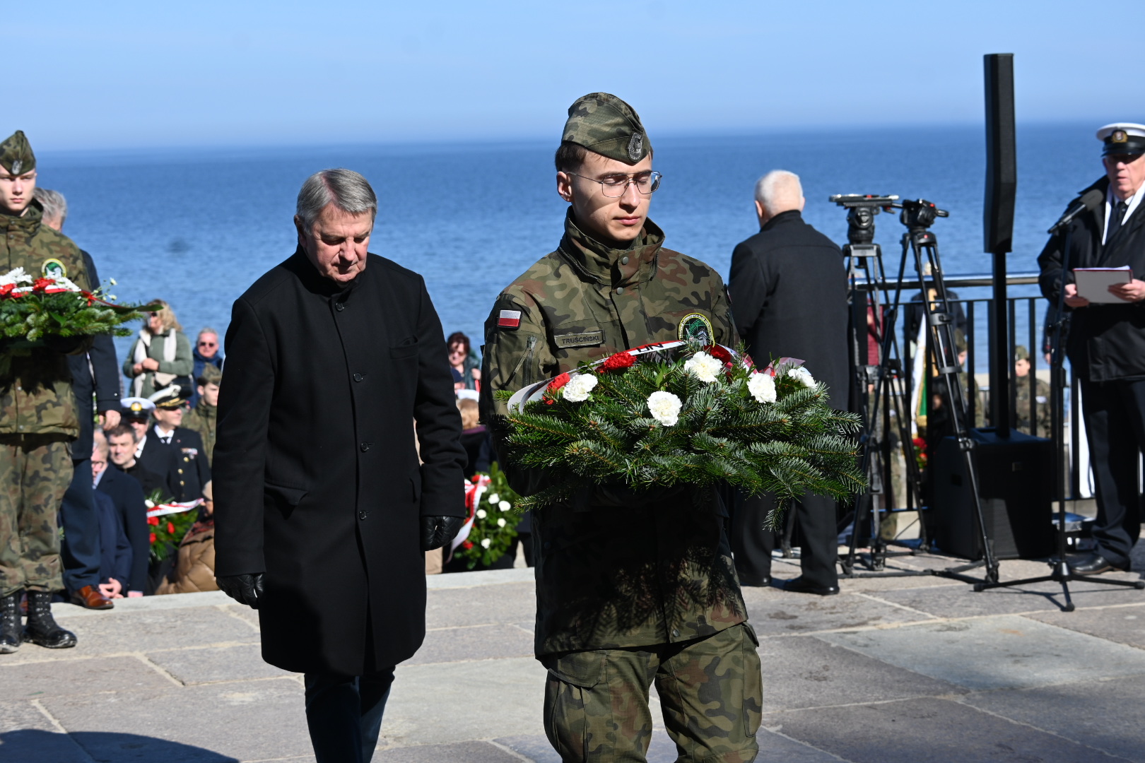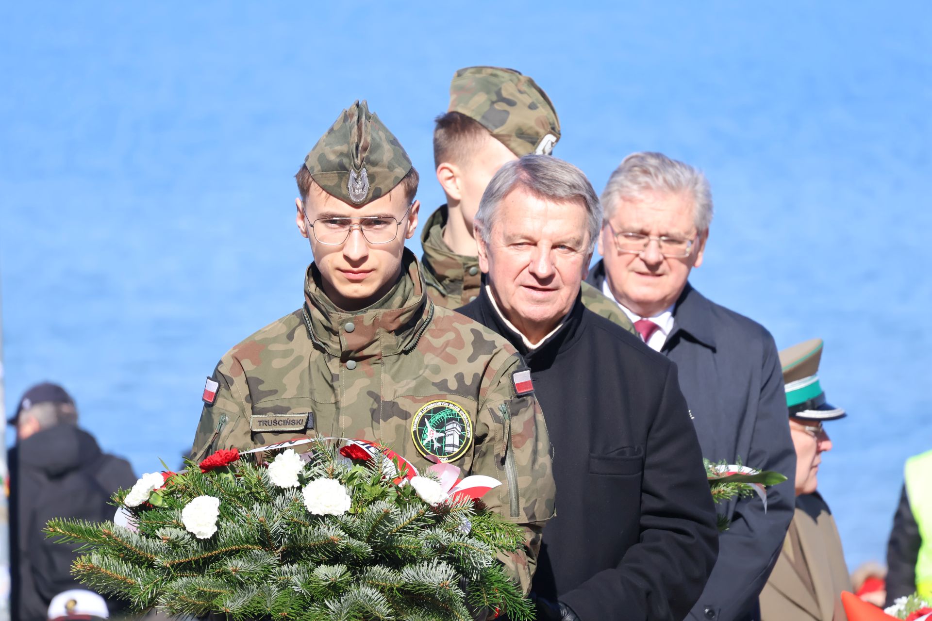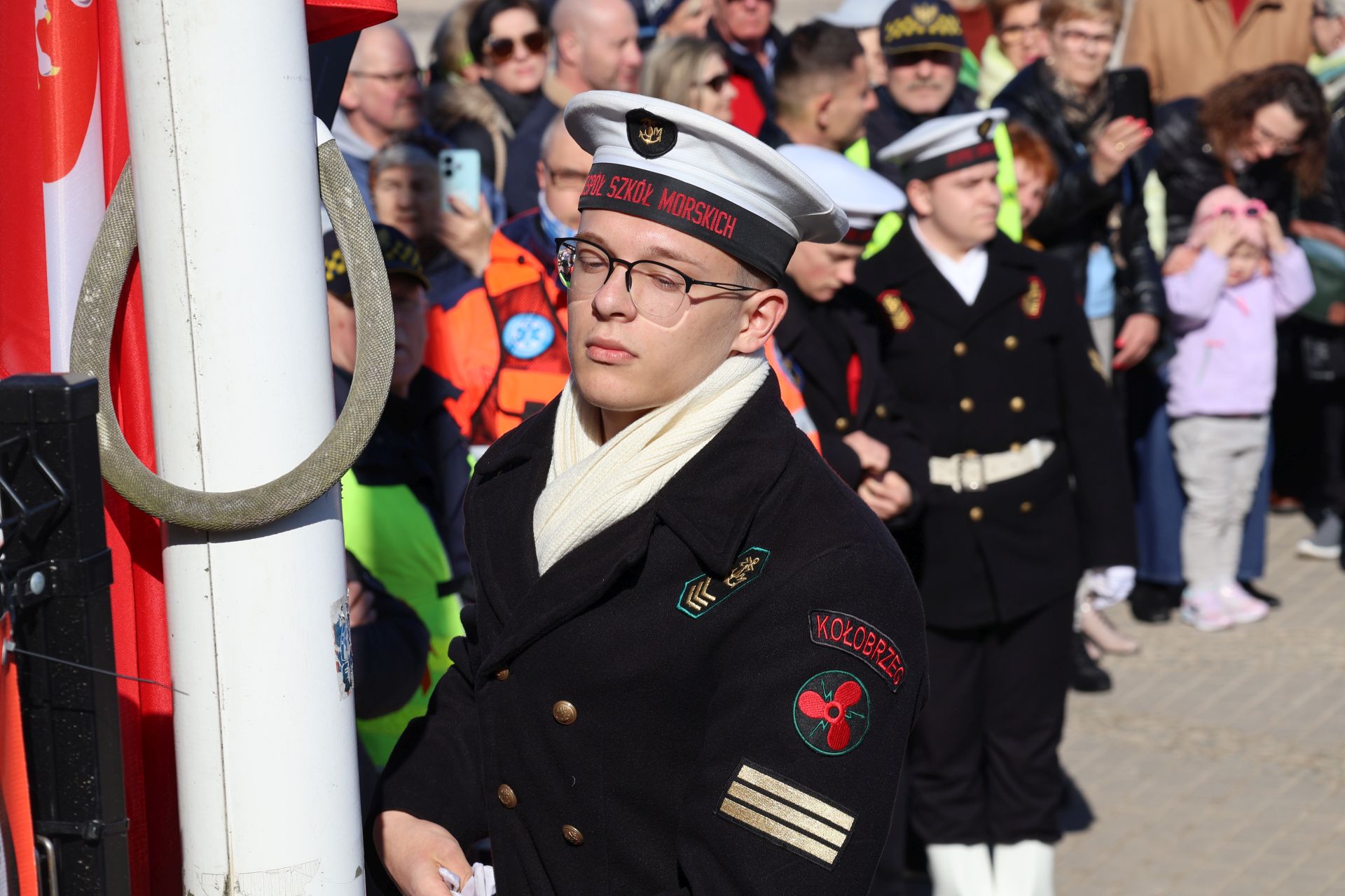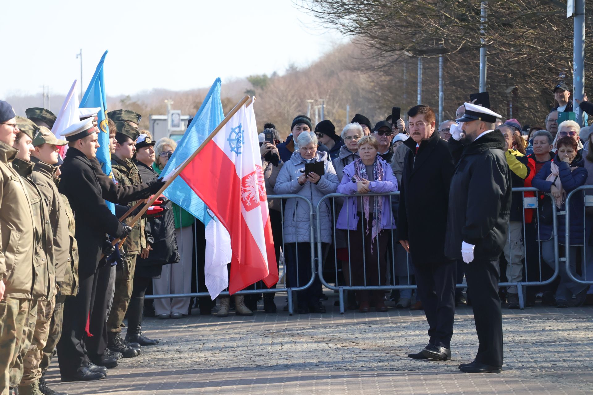 Dziś Kołobrzeg oddaje hołd tym, którzy walczyli o miasto w marcu 1945 roku. Uroczystości rozpoczęto przy Pomniku Zaślubin z Morzem. To tu odbyło się ślubowanie jungów Ligi Morskiej i Rzecznej. Wspominano również uczestników boju o Kołobrzeg i dziękowano tym, którzy włożyli wiele trudu w odbudowę miasta po wojnie. W czasie uroczystości można było zaobserwować ostatnich uczestników walk o Kołobrzeg, a tuż obok najmłodsze pokolenie mieszkańców.  Wydarzenie zaszczycili swoją obecnością: major Bolesław Danielkiewicz oraz porucznicy Edward Róg, Józef Nowak i Józef Kwiatkowski. Przed pomnikiem złożono kwiaty. Nie mogło też zabraknąć symbolicznego zanurzenia flag w wodach Bałtyku.