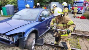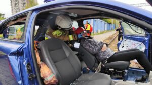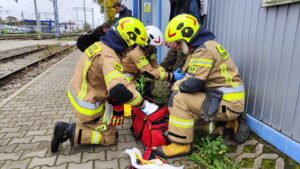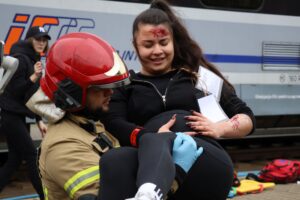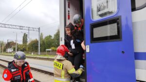 Samochód osobowy nie zatrzymał się do kontroli drogowej. Rozpoczyna się pościg, a samochód doprowadza do zderzenia z pociągiem. Na miejscu jest kilkadziesiąt osób poszkodowanych – taki był scenariusz dzisiejszych ćwiczeń przy torowisku w okolicach ulicy Okopowej.