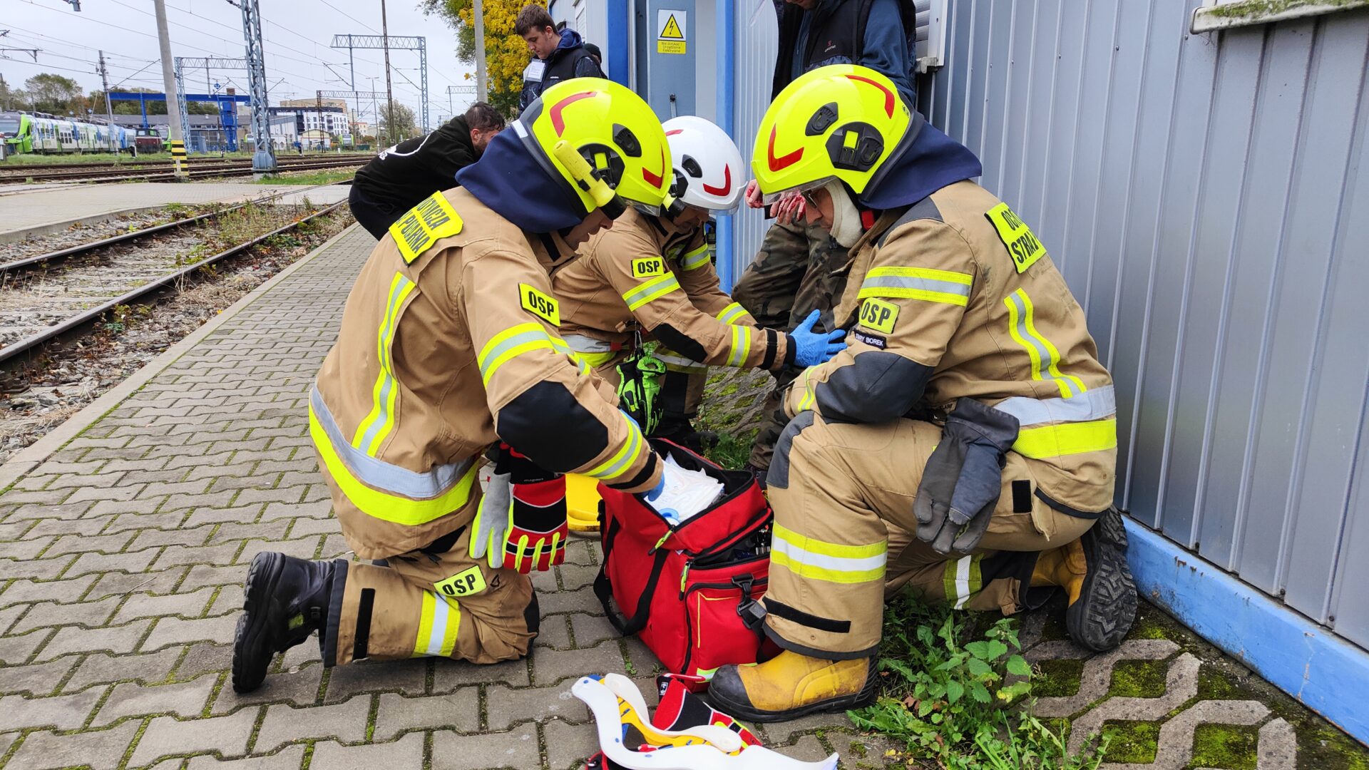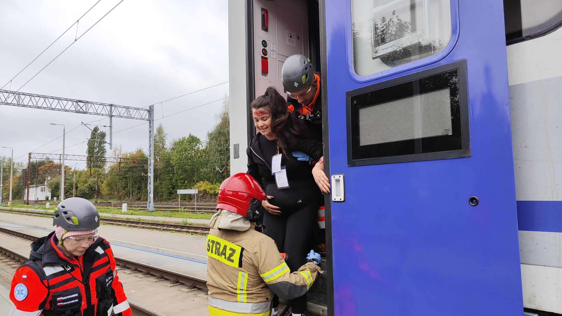 Mieszkańców okolicznego wieżowca, którzy z niepokojem przyglądali się pojawiającym się na miejscu służbom uspokajamy – były to jedynie ćwiczenia w razie wypadku masowego i na miejscu nikt nie ucierpiał. – Spotykamy się już po raz czwarty i zawsze dzięki tym ćwiczeniom można wyciągnąć dużo wniosków – mówi Mateusz Giec, z grupy „Paramedic”, która jest inicjatorem ćwiczeń. W działaniach wzięły udział jednostki straży pożarnej z powiatu kołobrzeskiego, a także policja, straż miejska, straż ochrony kolei i straż graniczna. Nie zabrakło też ratowników medycznych, którzy musieli udzielać pomocy rannym. Scenariusz przewidywał również takie wydarzenia, jak panika czy agresja poszkodowanych lub oddalenie się z miejsca wypadku. Tu do akcji ruszył policyjny pies tropiący. – Działania straży pożarnej i innych podmiotów polegały na tym, żeby ewakuować osoby zakleszczone w pojeździe, jak i znajdujące się w pociągu – opisuje Karol Milczarek z Komendy Powiatowej Państwowej Straży Pożarnej. Cała akcja zakończyła się powodzeniem, a służby przećwiczyły skoordynowane działania.