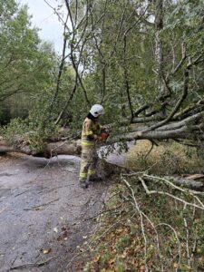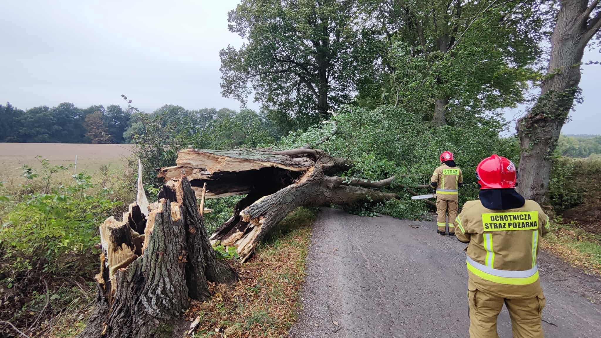 Silny wiatr – powalone drzewa i uszkodzony dach