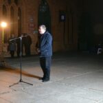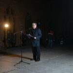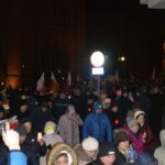Uczestnicy zgromadzenia modlili się także przy kołobrzeskiej bazylice, gdzie punktualnie o godz. 21.37 zapalili znicze przy tablicy upamiętniającej wizytę kardynała Karola Wojtyły w Kołobrzegu w 1975 roku.