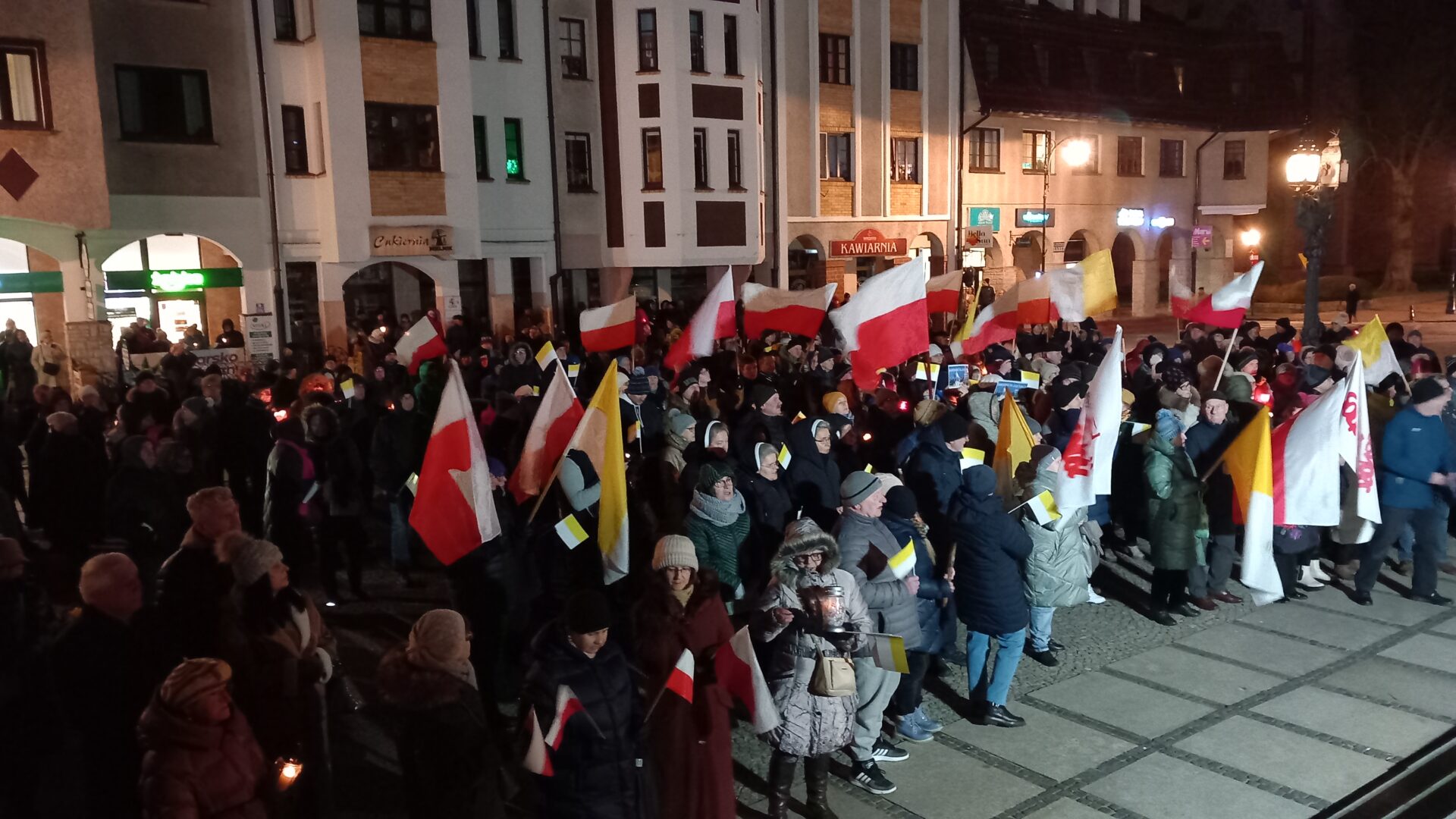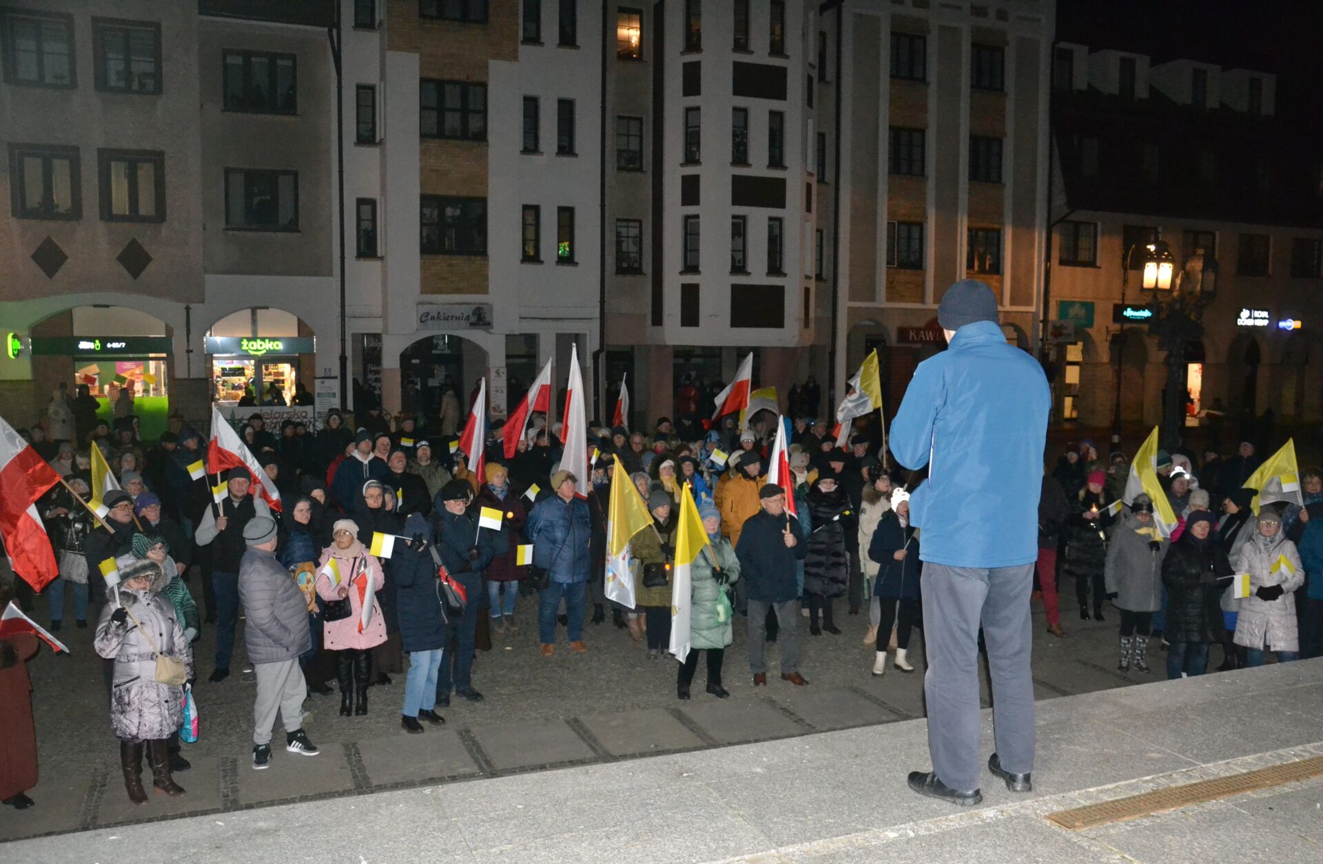 „Razem przy św. Janie Pawle II” – pod takim hasłem w niedzielny wieczór przed kołobrzeskim ratuszem zorganizowano zgromadzenie papieskie.