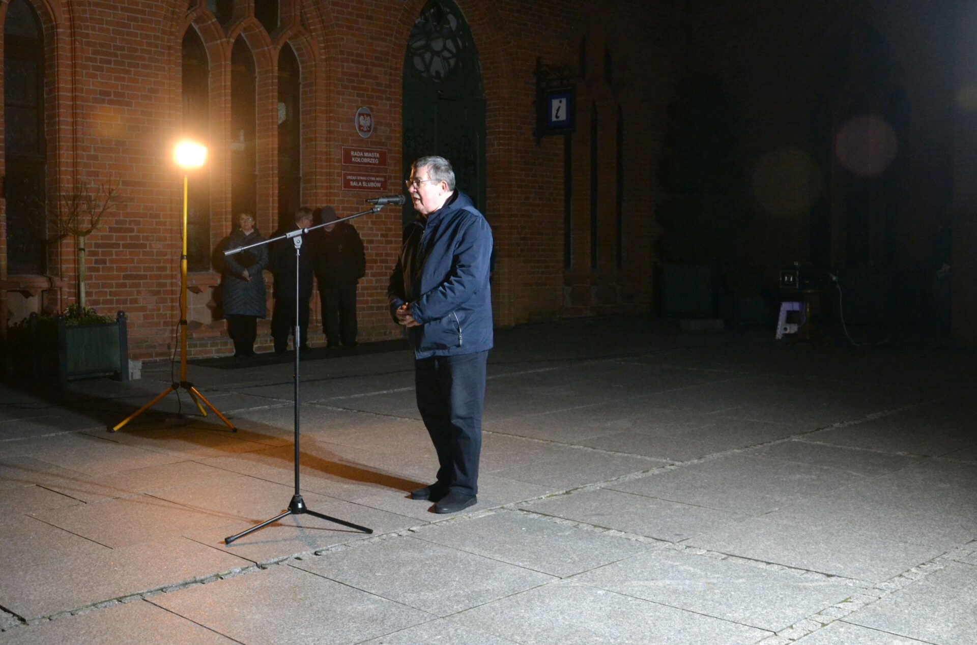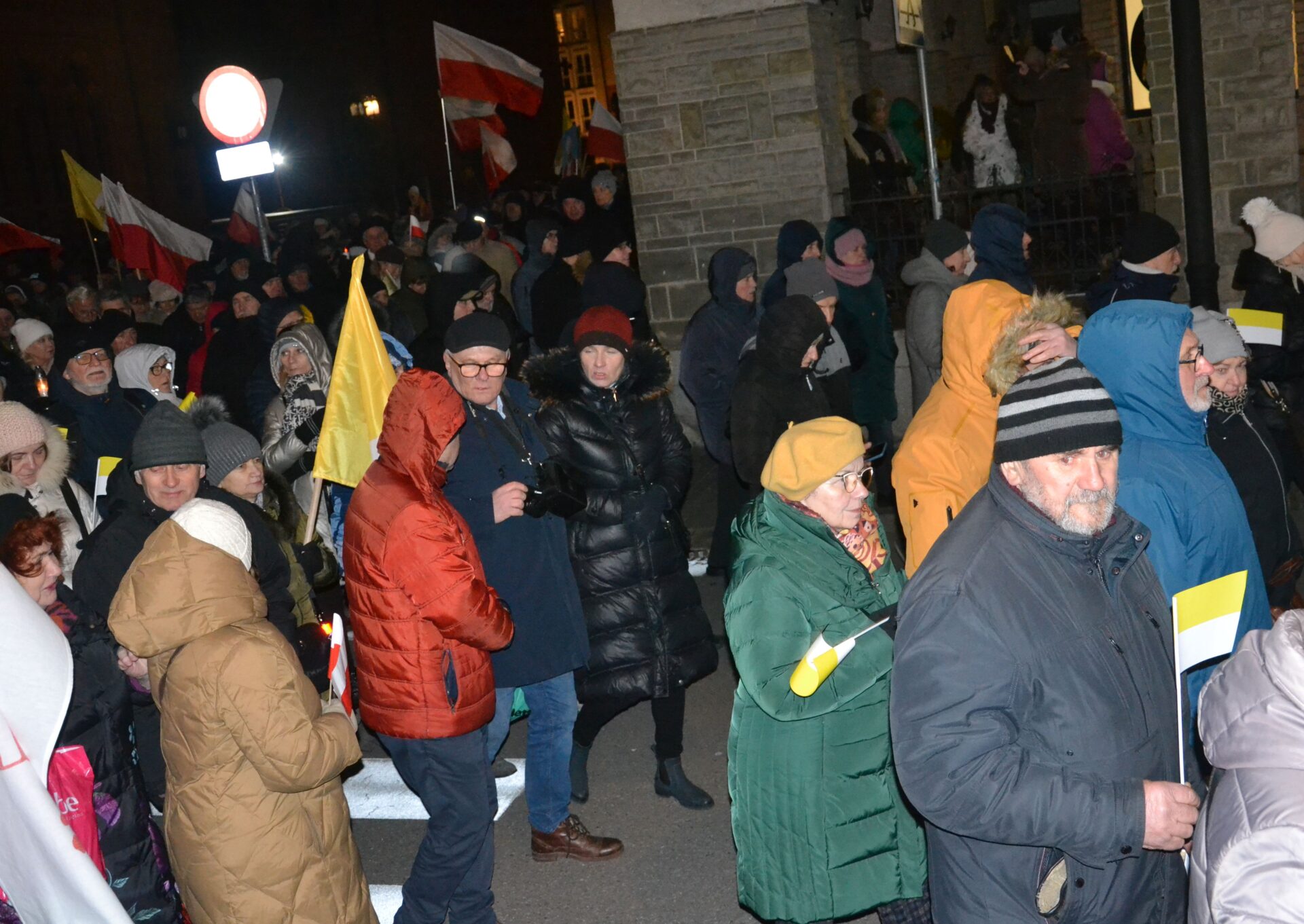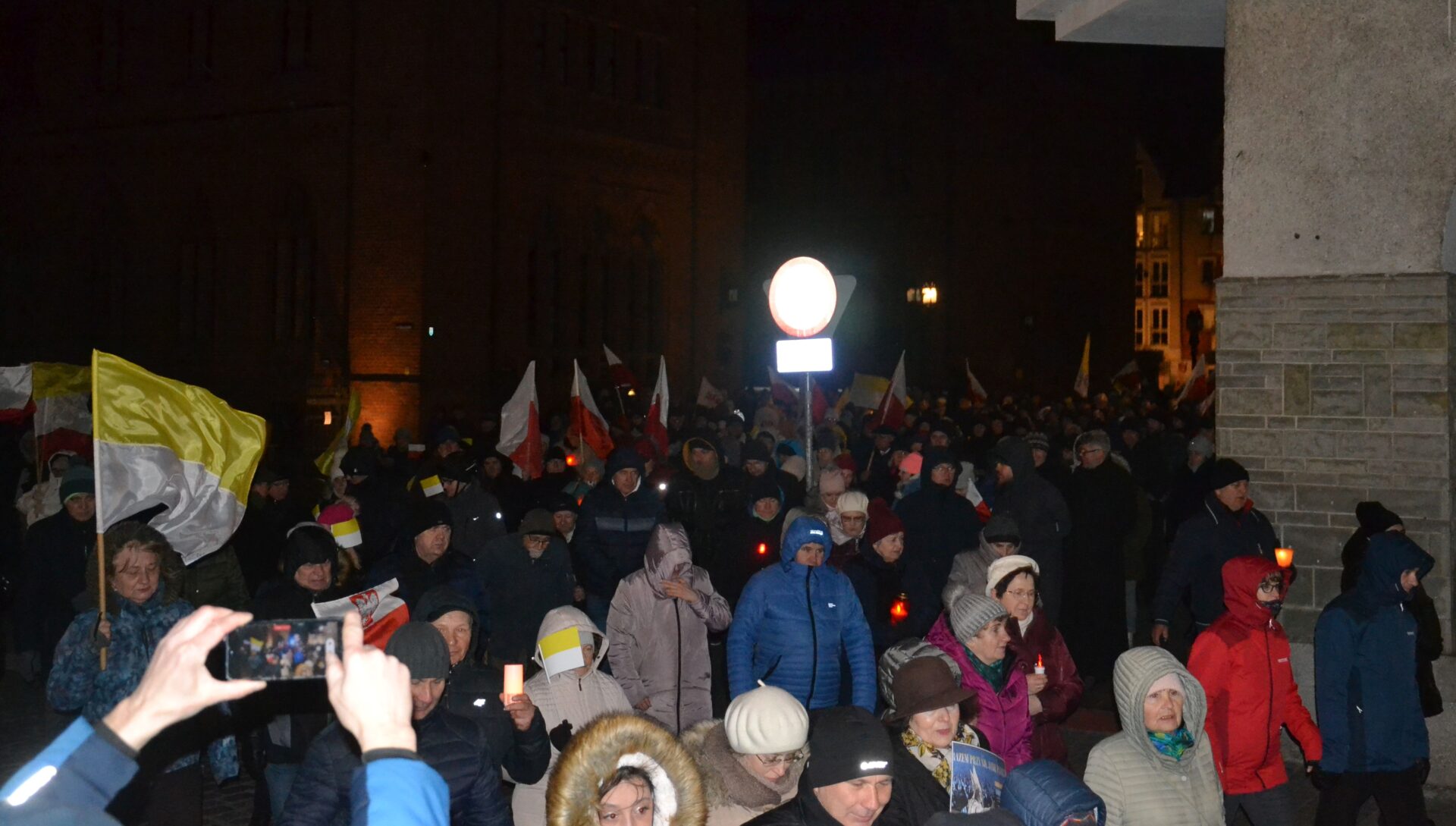 Uczestnicy zgromadzenia modlili się także przy kołobrzeskiej bazylice, gdzie punktualnie o godz. 21.37 zapalili znicze przy tablicy upamiętniającej wizytę kardynała Karola Wojtyły w Kołobrzegu w 1975 roku.