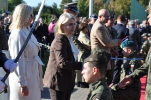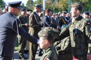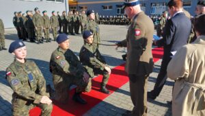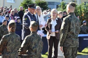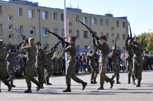 Na zakończenie uroczystości odbył się pokaz musztry paradnej w wykonaniu uczniów klas pierwszych. Oprawę muzyczną zapewniła Wojskowa Orkiestra z Koszalina.