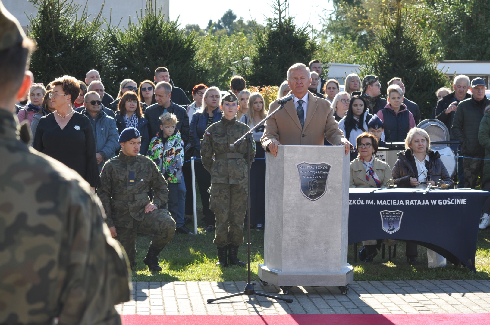 Obchody święta szkoły były również okazją do podpisania porozumienia o współpracy pomiędzy 12 Kołobrzeskim Pułkiem Logistycznym im. gen. dyw. Antoniego Pawła Sułkowskiego w Kołobrzegu a Zespołem Szkół im. Macieja Rataja w Gościnie. Umowę podpisali zastępca dowódcy ppłk Robert Sęk oraz dyrektor szkoły Halina Schulz-Tkacz. Celem współpracy jest przygotowanie uczniów do podjęcia służby wojskowej poprzez realizację praktycznego szkolenia, prowadzącego do opanowania wiedzy i umiejętności wojskowych określonych w „Programie szkolenia realizowanego w oddziale przygotowania wojskowego”.