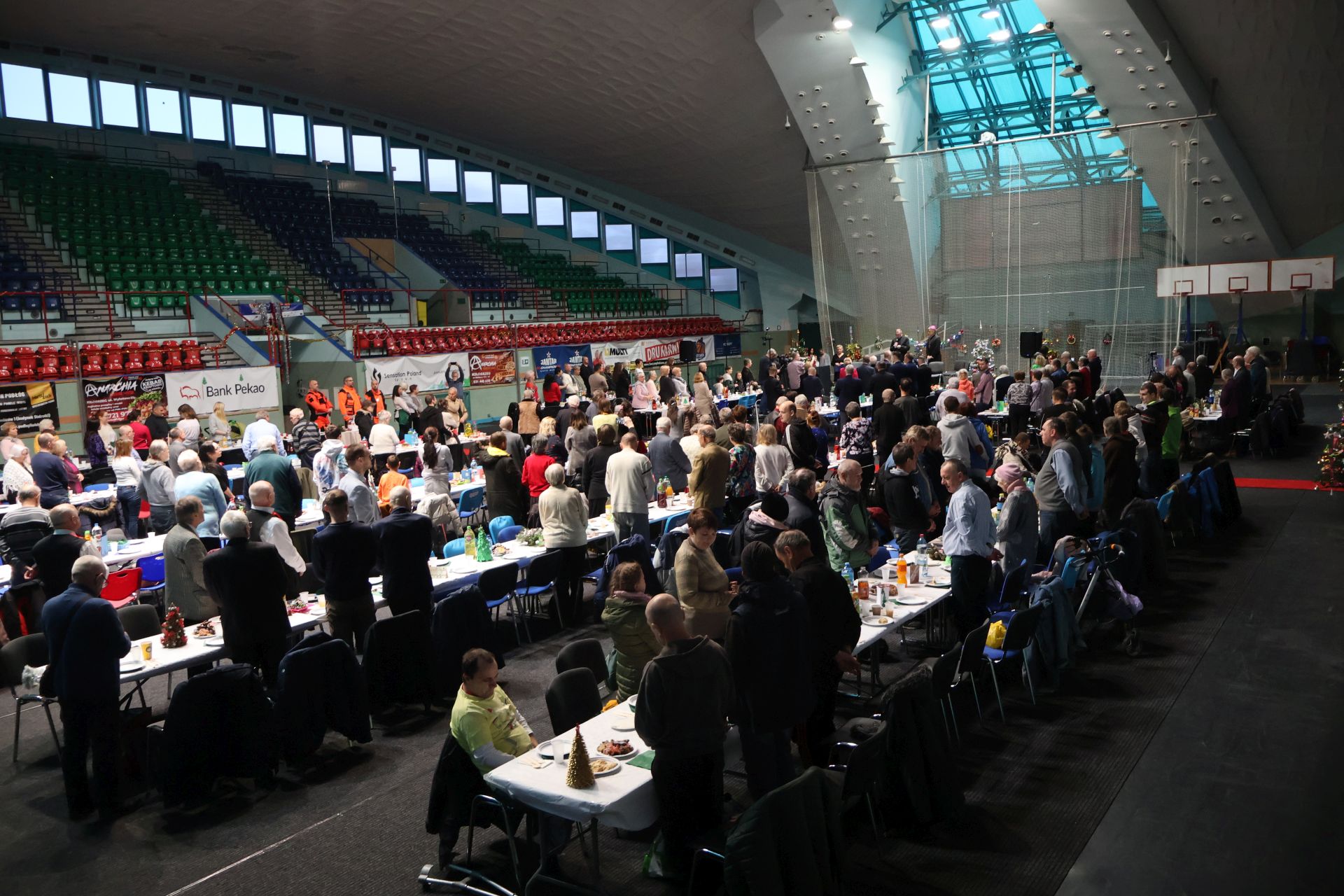 W hali Milenium trwa największa kolacja wigilijna w Kołobrzegu i jedna z liczniejszych w regionie. Przy wigilijnych stołach zasiadło około 300 osób.