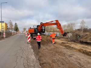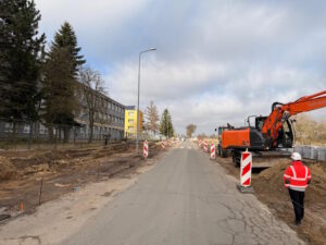 Pogoda sprzyja obecnie realizacji robót drogowych i ziemnych. Wykonawca prowadzi korytowanie pod nową drogę pieszo–rowerową i równolegle powstają zatoki autobusowe. Kolejnym etapem będzie poszerzenie jezdni, co pozwoli usprawnić ruch i przygotować teren pod kolejne prace. Całość powinna być gotowa w czerwcu. Koszt całej inwestycji to prawie 3 mln zł. Jak przypomina starosta Mirosław Tessikowski, powiat pozyskał na ten cel dofinansowanie w wysokości 60% z Rządowego Funduszu Rozwoju Dróg.