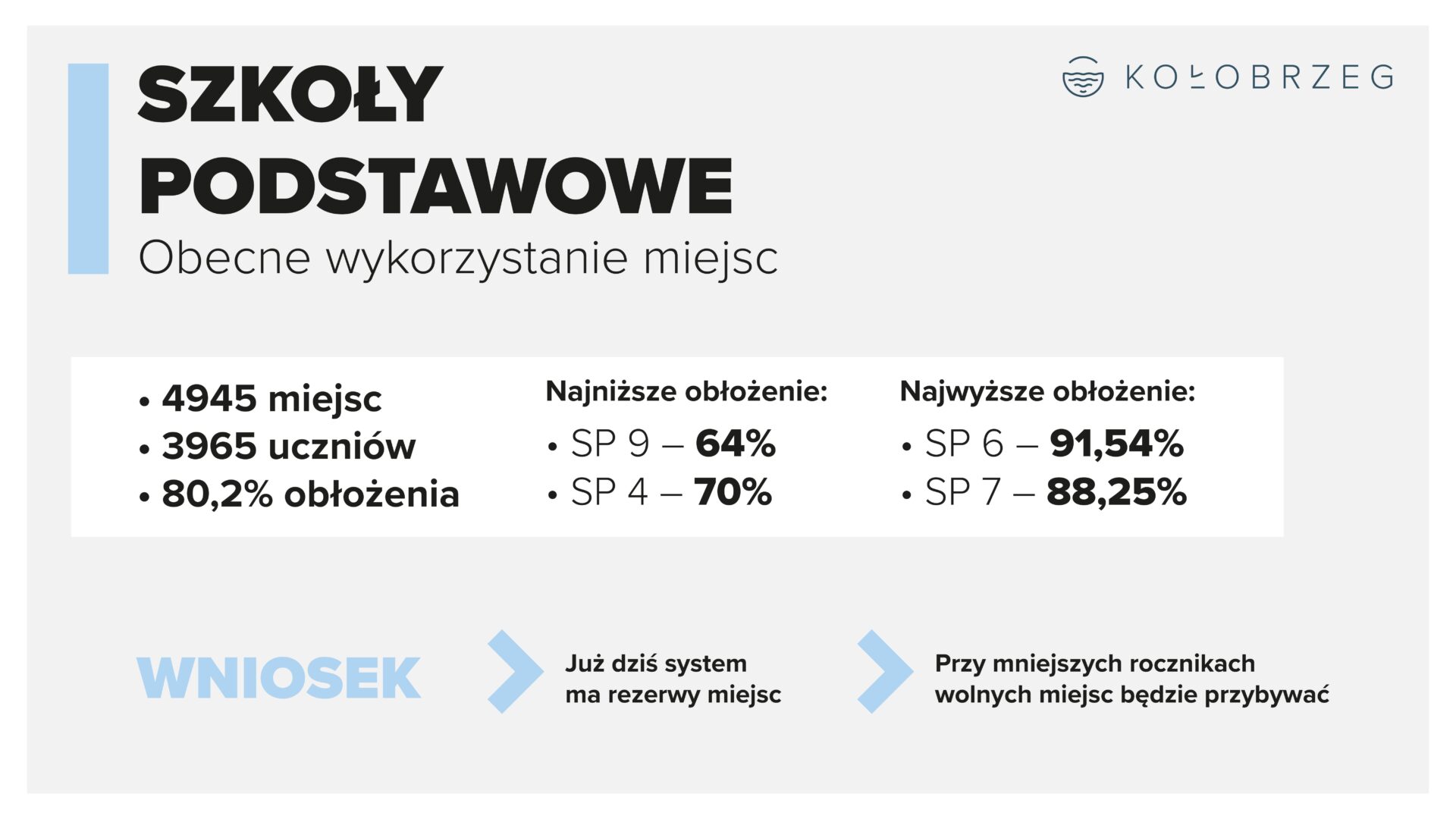 Już dziś widać skutki demografii. W przedszkolach miejskich przygotowano 1120 miejsc, ale uczęszcza do nich 996 dzieci — czyli niespełna 89 procent dostępnej liczby. Nawet po przyjęciu około 70 dzieci z prywatnego przedszkola kończącego działalność w systemie nadal pozostaną wolne miejsca. Podobna sytuacja dotyczy szkół podstawowych, gdzie przy 4945 miejscach uczy się 3965 uczniów, co oznacza wykorzystanie na poziomie około 80 procent.