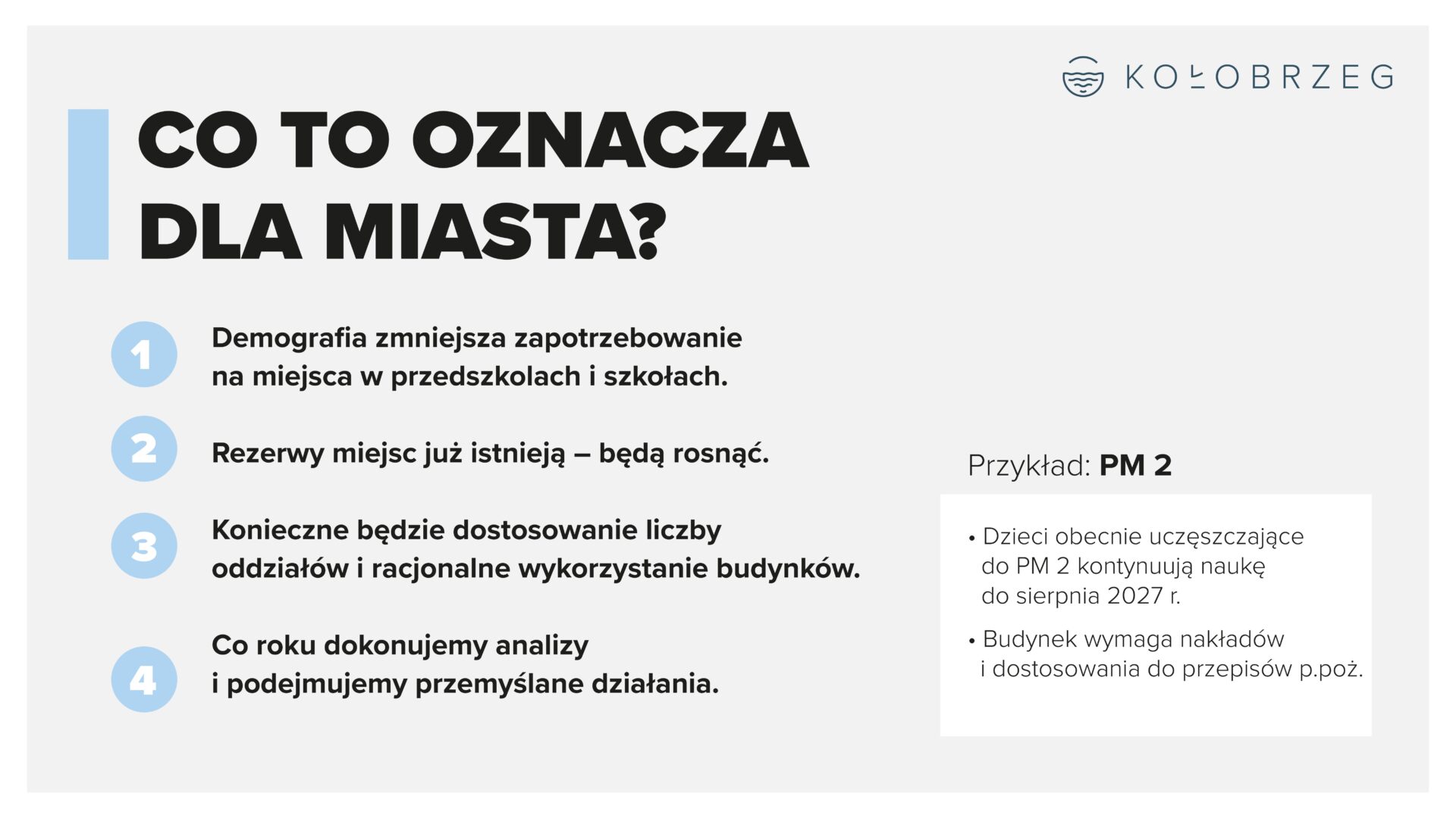 Miasto zapowiada dalsze monitorowanie danych demograficznych. To one – a nie doraźne decyzje – mają wyznaczać przyszły kształt sieci szkół i przedszkoli w Kołobrzegu.