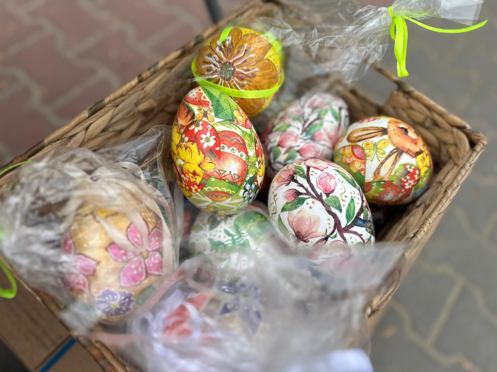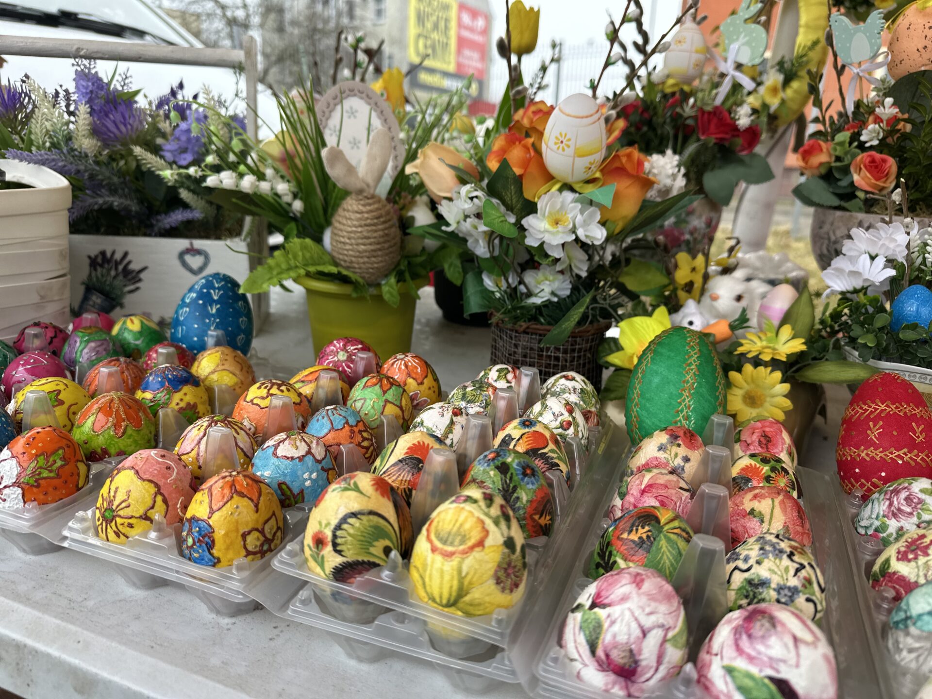Na kołobrzeskim targowisku spotykamy dwie niezwykłe kobiety, które od lat poświęcają się tej sztuce – Grażynę Staszewską i Stanisławę Machaj z Rościęcina. Ich stoisko od razu przyciąga wzrok: kolorowe jajka w różnych technikach zdobienia, palmy wielkanocne z bukszpanu i bibuły, a także stroiki i ozdoby, które same porównują do małych dzieł sztuki.