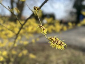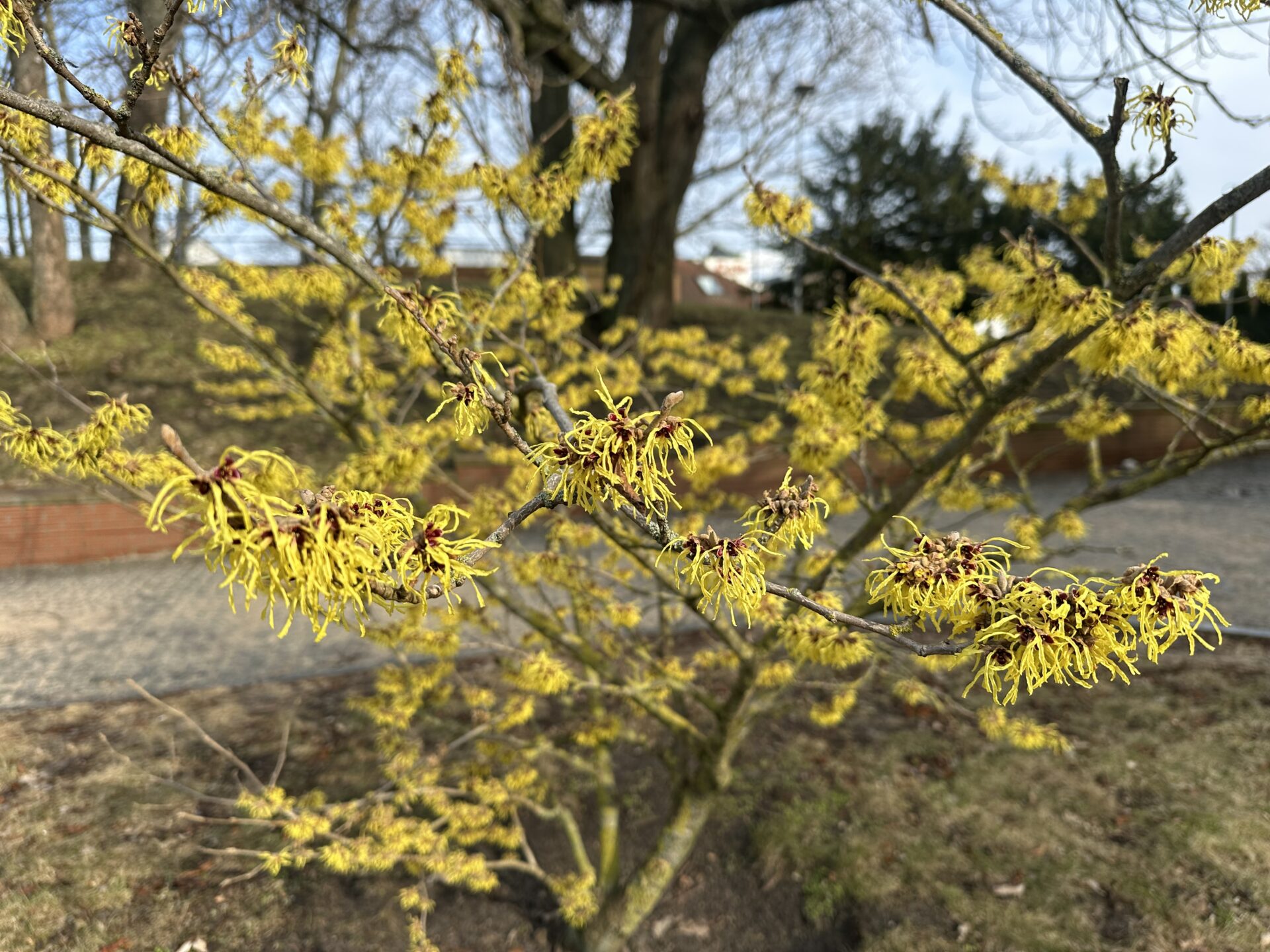 Można już podziwiać intensywnie żółte, delikatne kwiaty o charakterystycznych, wstążkowatych płatkach. Na tle jeszcze uśpionej przyrody prezentują się wyjątkowo efektownie i przyciągają uwagę spacerowiczów.