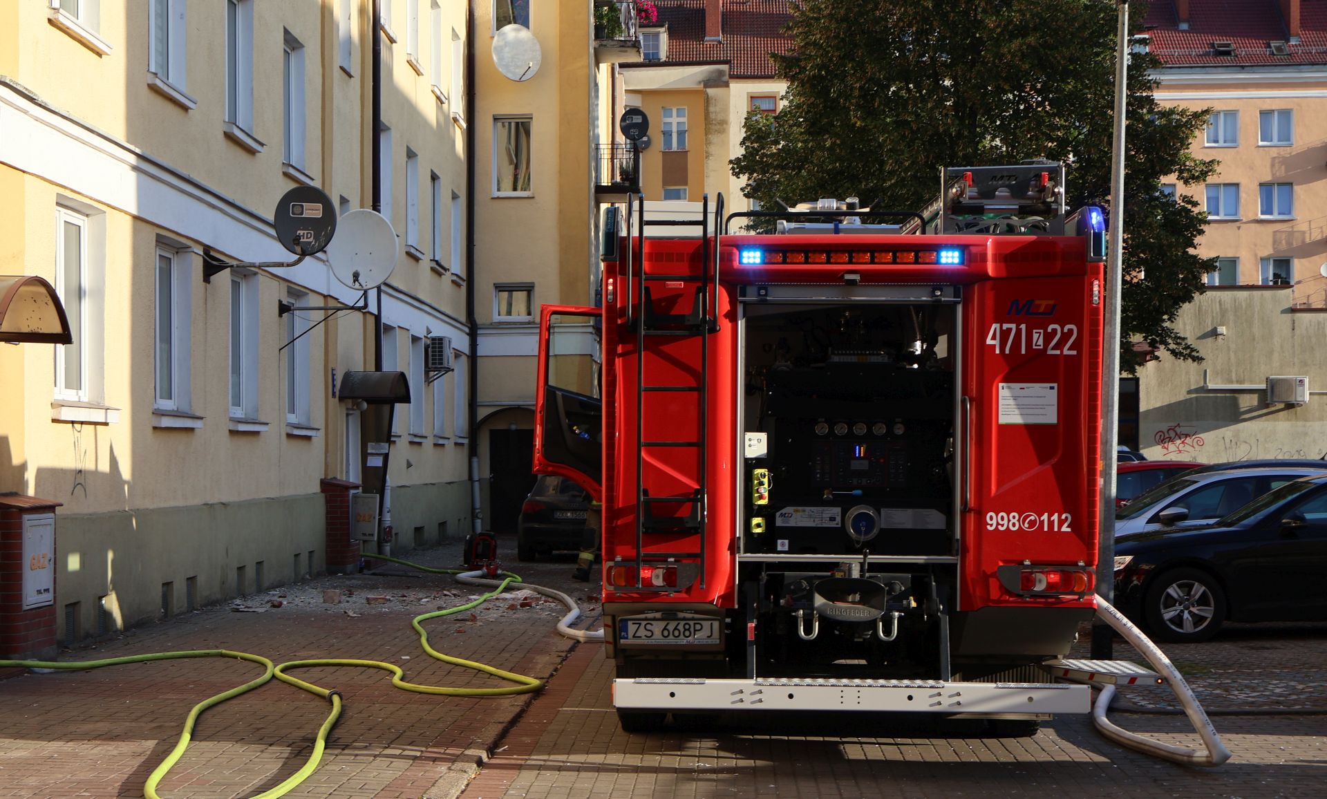 Na miejscu w jednym z mieszkań doszło do wybuchu gazu, a następnie do pożaru. Siła uderzenia była tak duża, że szkło z powybijanych okien zasypało całą ulicę. W mieszkaniu przebywała jedna osoba. Obecnie zajmują się nią ratownicy. Nie wiemy w jakim jest stanie. Okoliczne ulice zostały zamknięte.