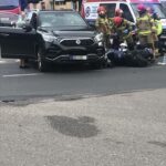 Zderzenie samochodu osobowego z motocyklem w okolicach kołobrzeskiego dworca PKP.