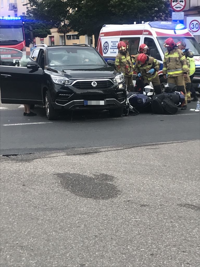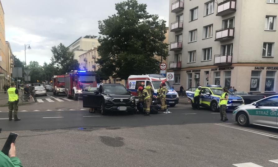 Do zdarzenia doszło tuż przed godz.19 na skrzyżowaniu ulicy Dworcowej z Jagiellońską. Brał w nim udział osobowy SsangYong i motocykl. Na miejscu pracują służby. Droga jest zablokowana. W wyniku zdarzenia zostały poszkodowane dwie osoby jadące motocyklem.