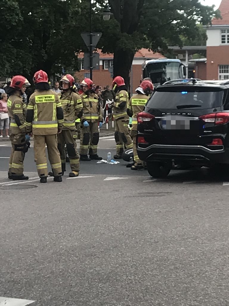 Zderzenie samochodu osobowego z motocyklem w okolicach kołobrzeskiego dworca PKP.