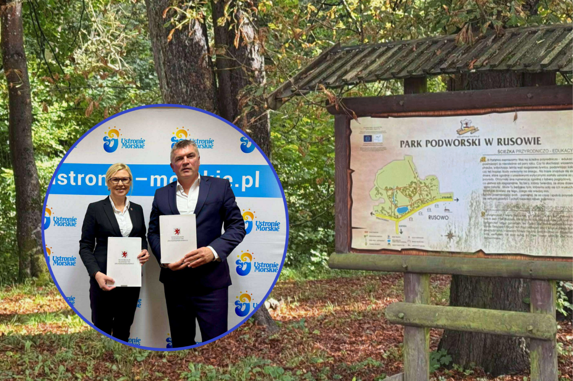 Gmina Ustronie Morskie podpisała umowę o dofinansowanie w kwocie 1 492 149,26 zł ze środków Funduszy Europejskich dla Pomorza Zachodniego projekcie pn. „Rewitalizacja dawnego parku pałacowego w miejscowości Rusowo”.